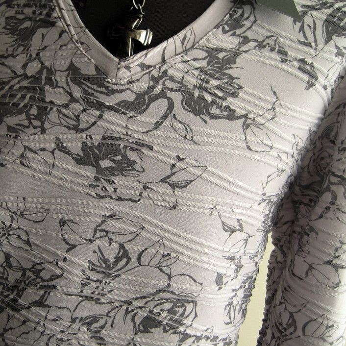 ■ウェーブジャカードにフラワープリントを施したVネックカットソー