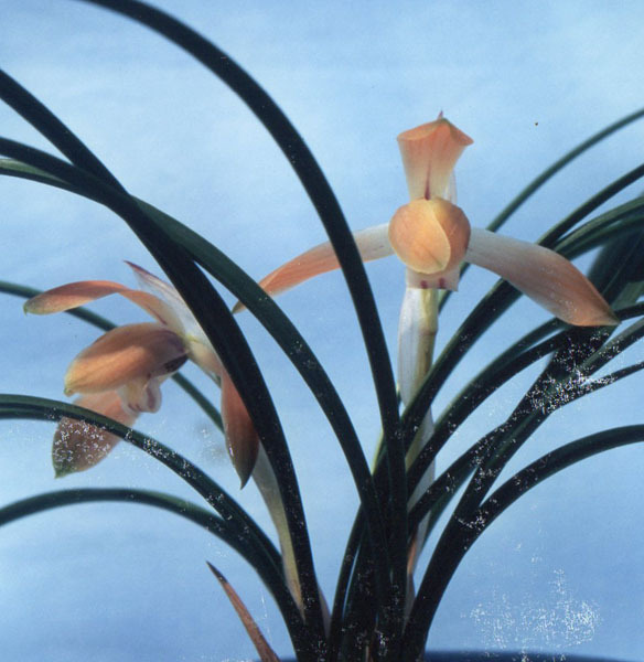 ◆桃花の桃春5本立の株(古バルブ3付)です。参考写真の増殖木で無加温栽培株です。