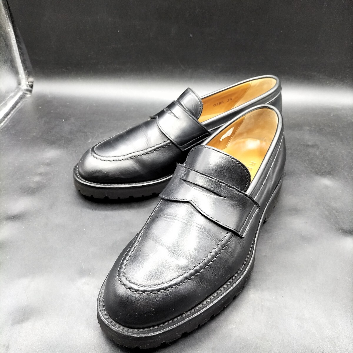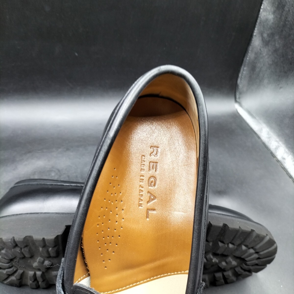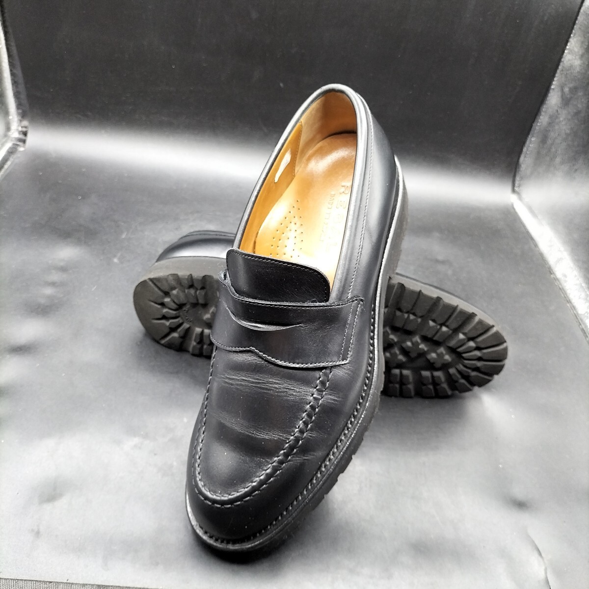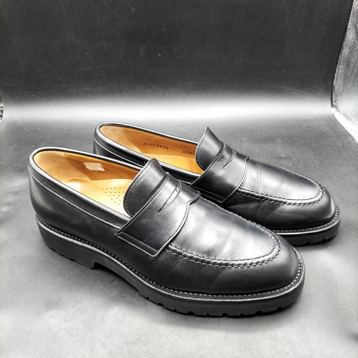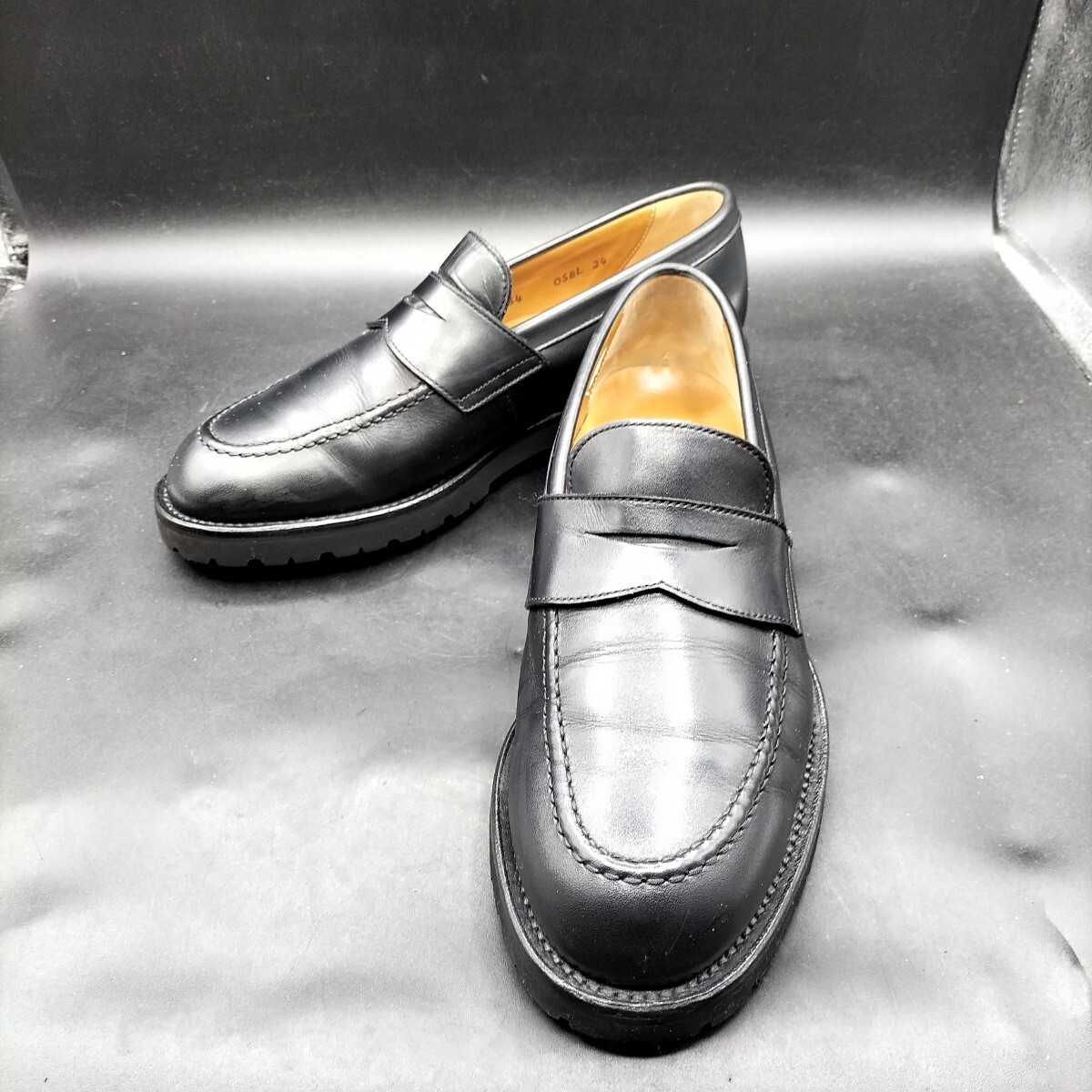 10M4730 良品 REGAL リーガル レザー コインローファー Uチップ メンズ 24cm ブラック 黒 革靴 ビブラム