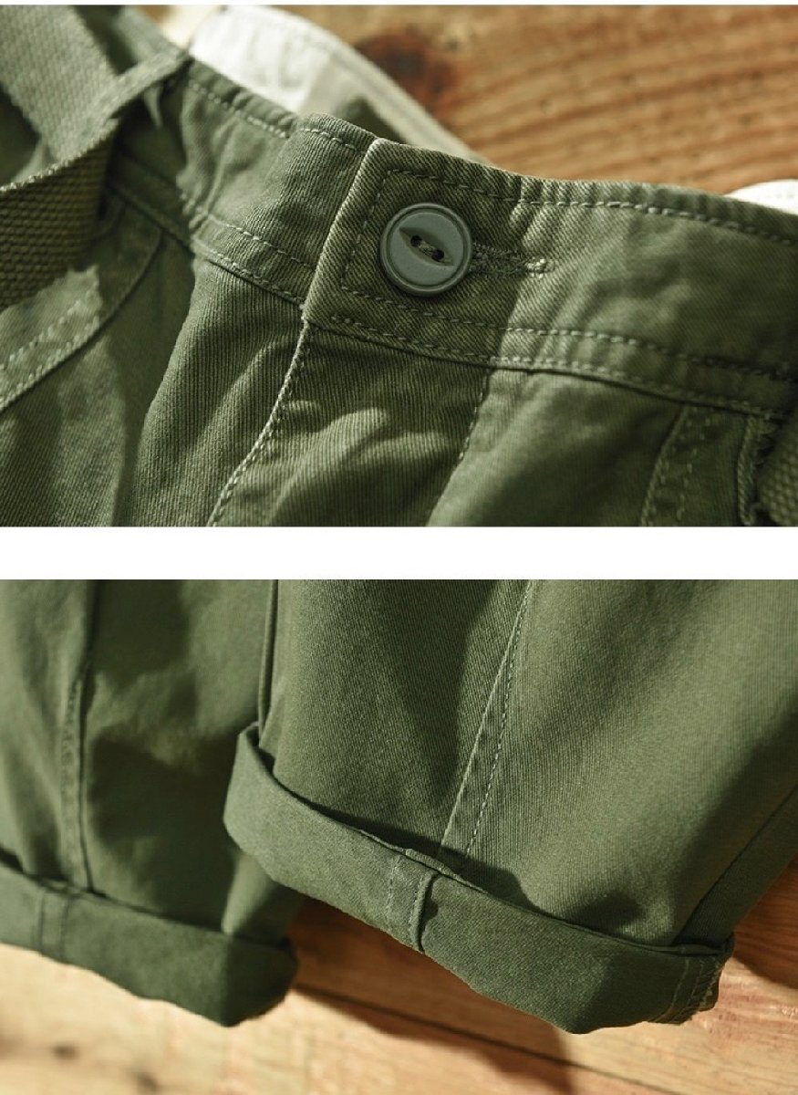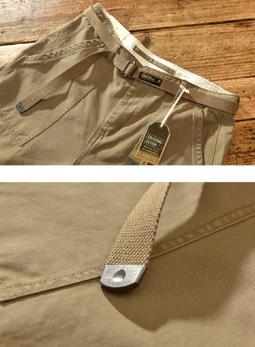 メンズカーゴパンツ ワイドパンツ チノパン コットンズボン 無地 ワークパンツ ロング カジュアル ボトムス 軍パン アウトドア カーキ 38