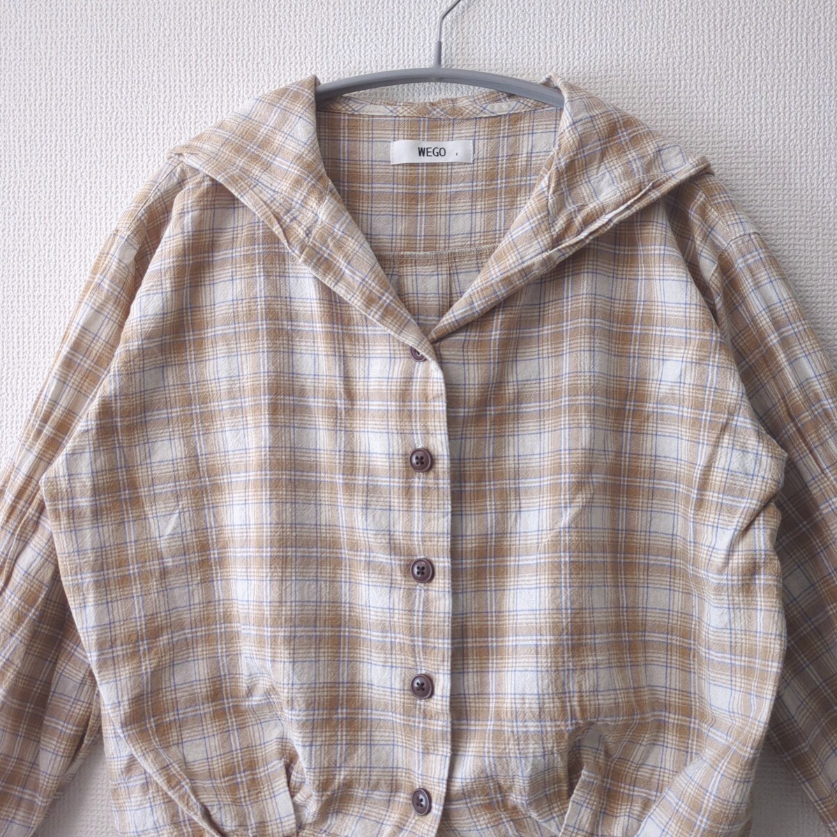 トレンドのセーラーカラーが可愛いWEGOのチェックシフーディ。カジュアルにもガーリーにも着こなせる春秋にぴったりの一枚です。