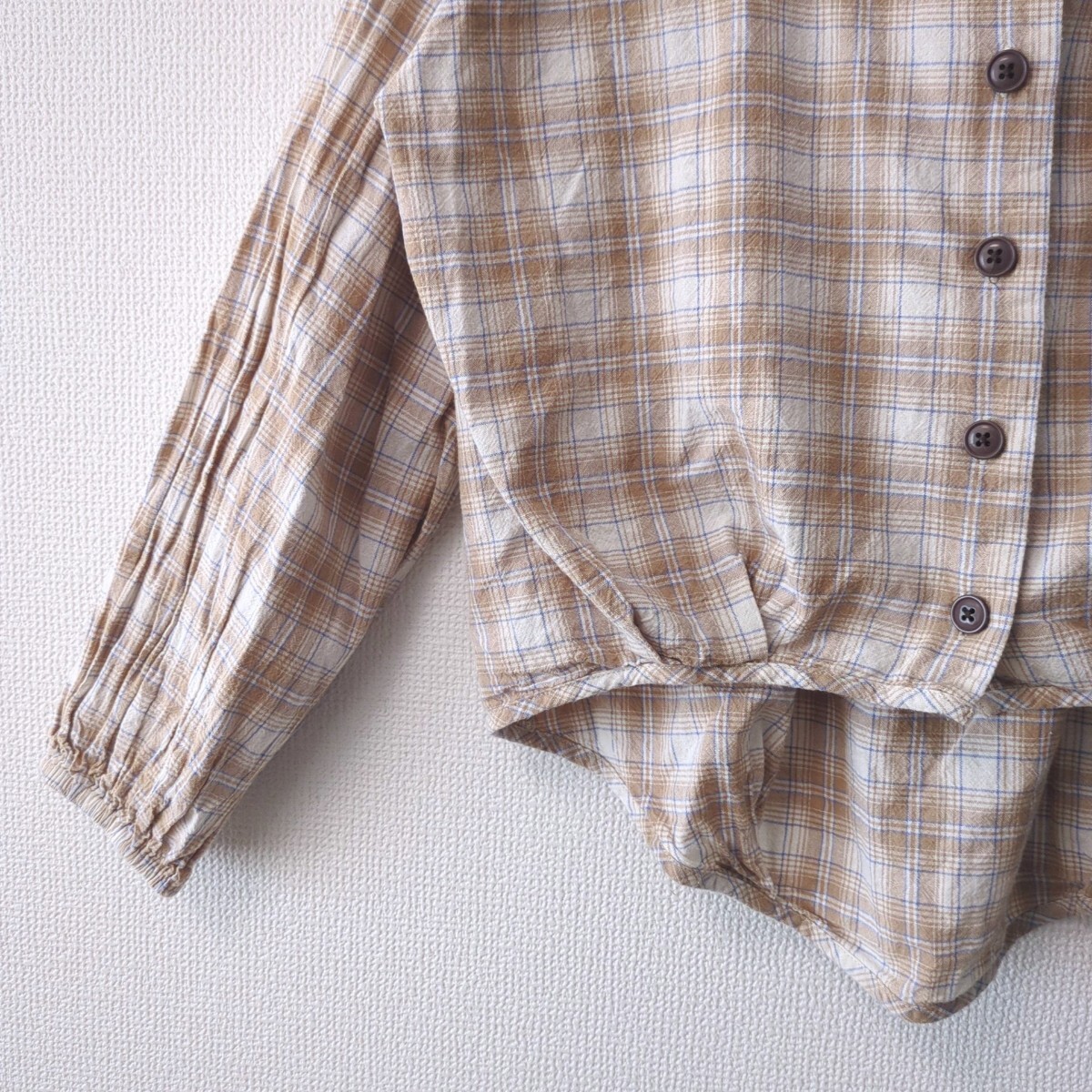 【仕様】:セーラーカラー、パーカー、前ボタン、チェック柄、裾ラウンドカット、袖口ゴム仕様