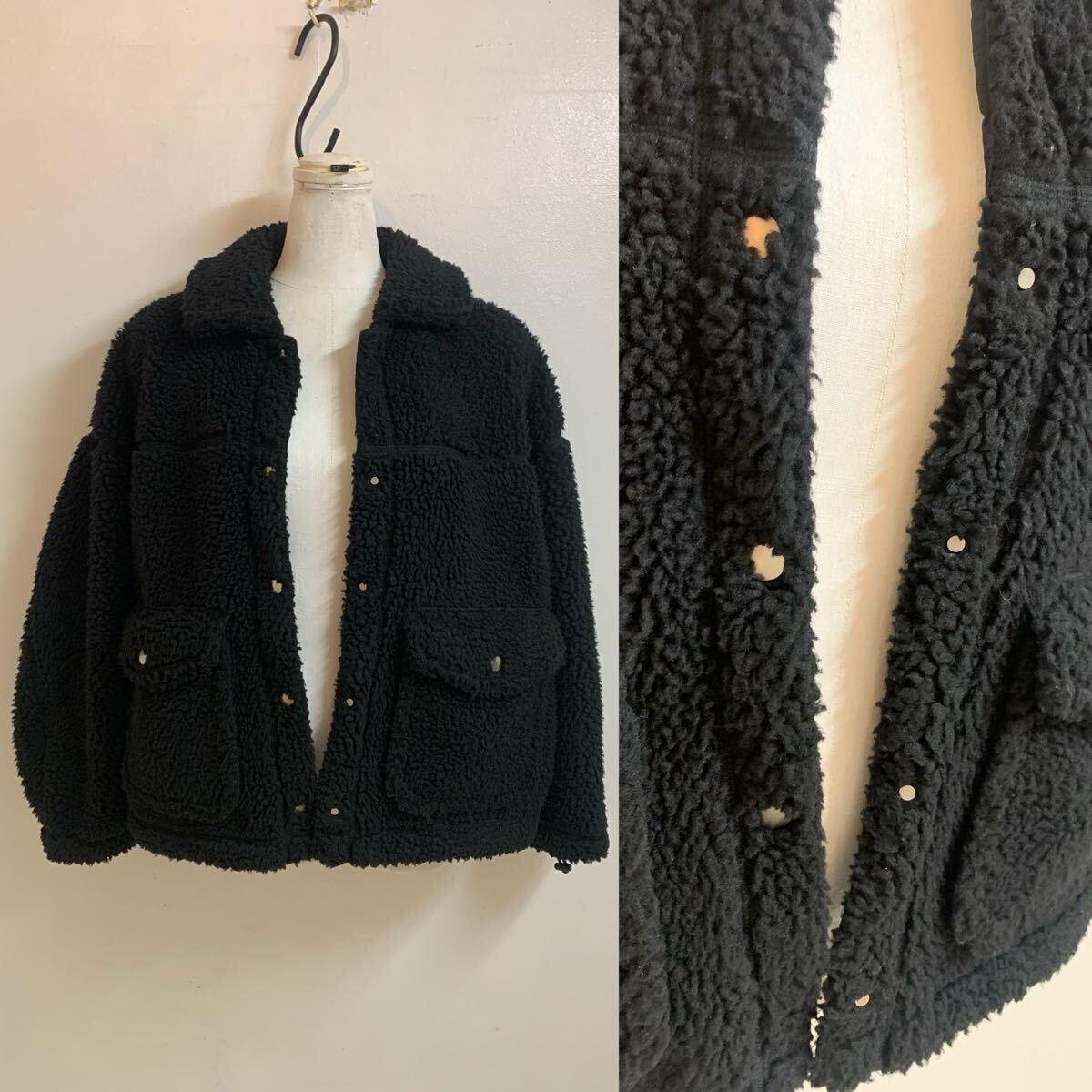 【IETM】BOA SHORT JACKET ボアショートジャケット ボアフリース ジャケット ブルゾン sizeF ブラック アーカイブ