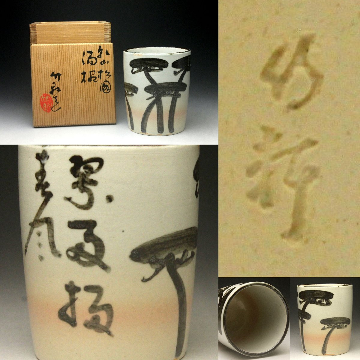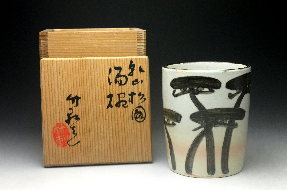 【余韻】 京焼 名工 三代目 三浦竹泉 三浦竹軒(作) 乾山杉図 湯碗★共箱 栞 無傷美品<同梱可>