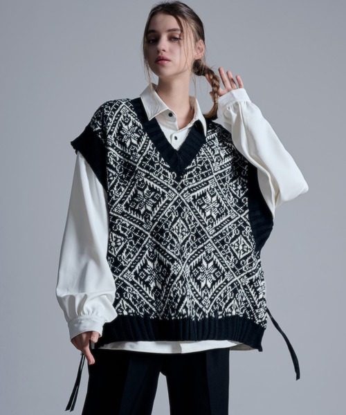 参考商品名:サイドコード ルーズVネックニットベスト