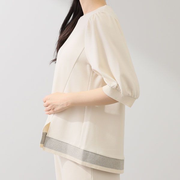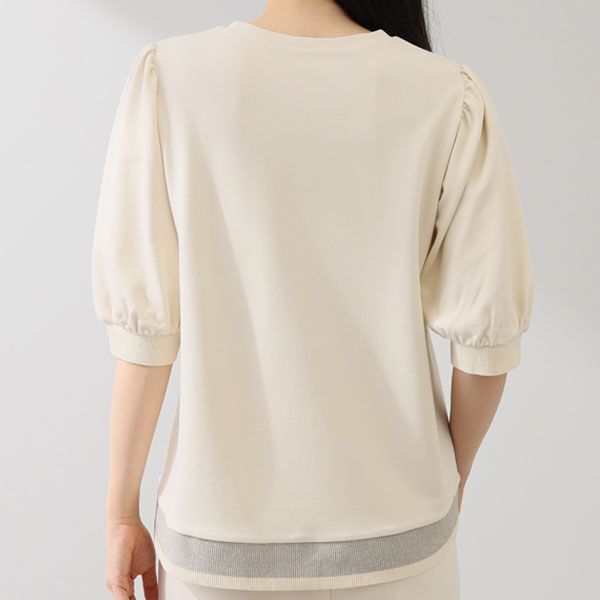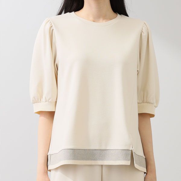 | 内 容 | ■ボン・サンス ストレッチポンチ ラメリブアクセント プルオーバー ■サイズ L 胸囲104cm/肩幅38cm/ウエスト112cm/着丈64cm ■カラー クリーム 【素材】 ・本体:レーヨン60%、ナイロン35%、ポリウレタン5% ・袖口部分:ポリエステル96%、ポリウレタン4% ・裾部分:ポリエステル97%、ポリウレタン3% 【メンテナンス(絵表示ラベル)】 ・手洗い:可 ・漂白処理:塩素系・酸素系漂白不可 ・タンブル乾燥:不可 ・自然乾燥:日陰の吊り干し ・アイロン仕上げ:可(低温) ・ドライクリーニング:石油系ドライクリーニング可 ・ウエットクリーニング:可 【詳細】 ・開きの場所:なし ・襟のデザイン:ラウンドネック ・袖の長さ:五分袖 ・袖のデザイン:パフスリーブ ・ウエストシルエット:Aライン ・裏地:なし ・裾スリット:約前12cm ・肩パット:なし ・ポケット:なし ◆参考価格 7990円相当 光沢感があり、上品な表面感を持つ当ブランドオリジナルのストレッチポンチ素材を メインに使用。 ストレッチ性があるため、快適な着心地ながらもシルエットをきれいに保ちます。 ロングシーズンで着用できる点もうれしいポイント。 肩をふんわりと包み込むパフスリーブは程良いボリューム感に仕上げました。 アシンメトリーに入れた切り替えとスリットが動きのある表情を表現。 裾のリブは部分的にラメ糸を加えることでカジュアルさを抑え、女性らしさをプラスしました。 スポーティーさを残しながらもきれいめに着ていただける1枚です。 |