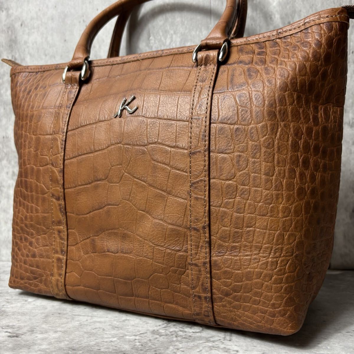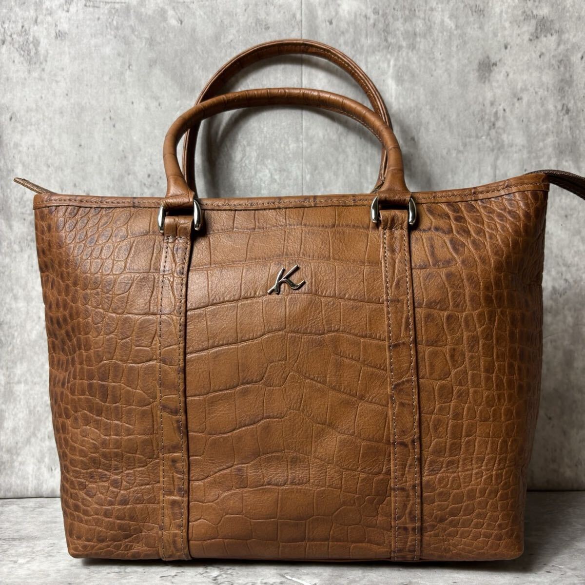 上品で丁寧なつくりに定評のある Kitamura(キタムラ) のトートバッグ。クロコダイル型押しの美しいレザーが高級感を演出し、センター取りデザインで存在感のある仕上がりです。シンプルながら洗練された印象で、通勤からお出かけまで幅広く活躍します。