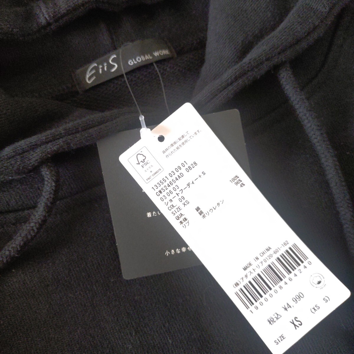 新品グローバルワーク高山直子さんコラボショートフーディーブラックXSです。150〜155センチくらいの方に。