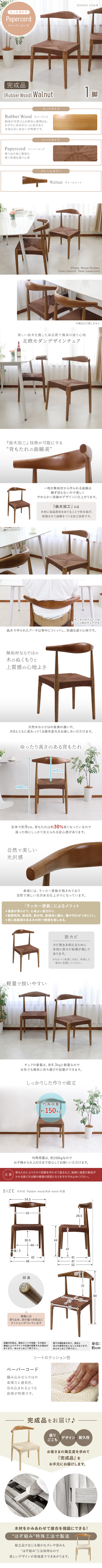 商品名 | 送料無料 ダイニングチェア 天然木 ラバーウッド 1脚 北欧チェア 木製 曲木 ペーパーコード 完成品 無垢材 エルボー リビング チェア イス 椅子 シンプル ウォールナット dchy |