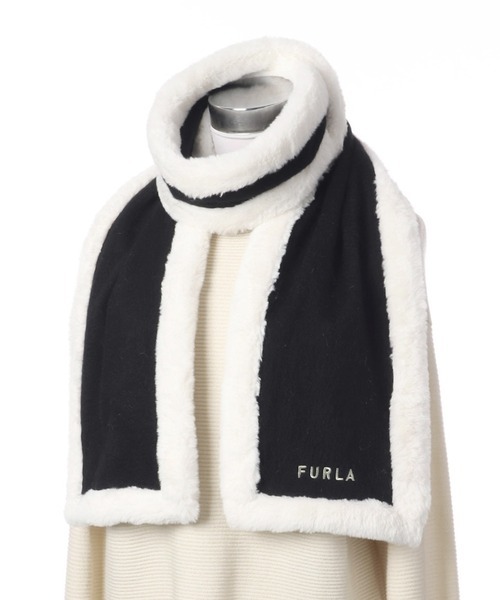 「FURLA」 マフラー FREE ブラック×ホワイト レディース