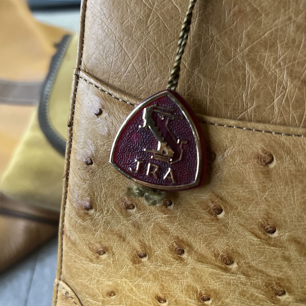 オーストリッチ ハンドバッグ(ブランド名不明、JRAマークあり)