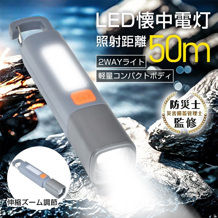 送料無料 懐中電灯 led 強力 小型 LED懐中電灯 ハンディライト USB充電 ランタン 明るい COBライト フラッシュライト 吊り下げフック sl103