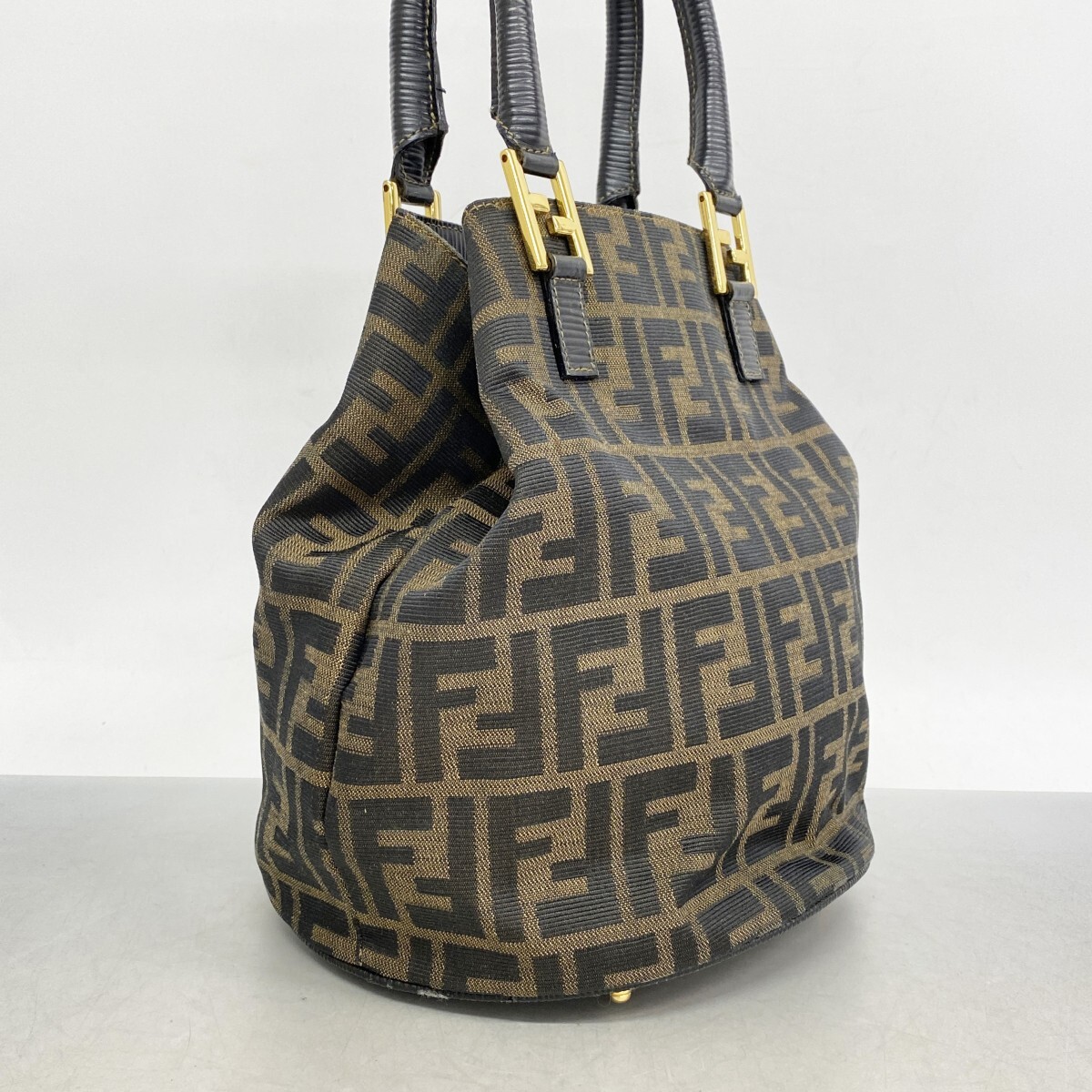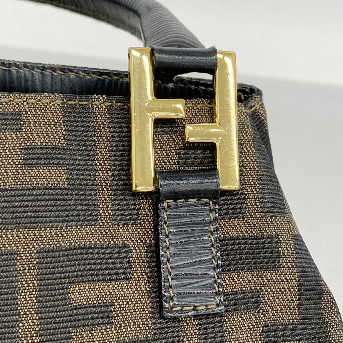 【5mb1857】フェンディ ハンドバッグ ズッカ ナイロンキャンバス ブラウン ゴールド金具【中古】レディース