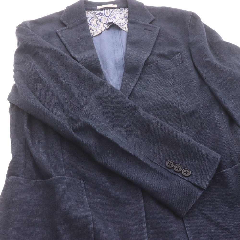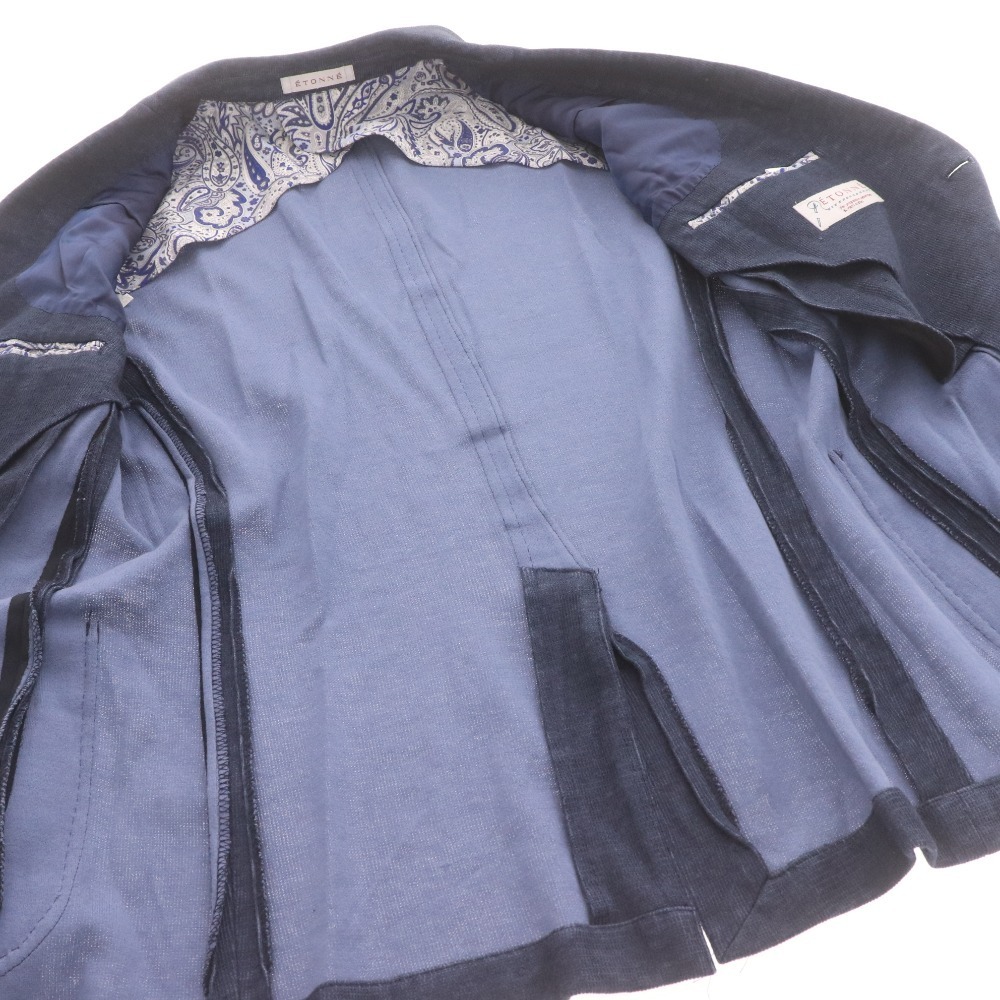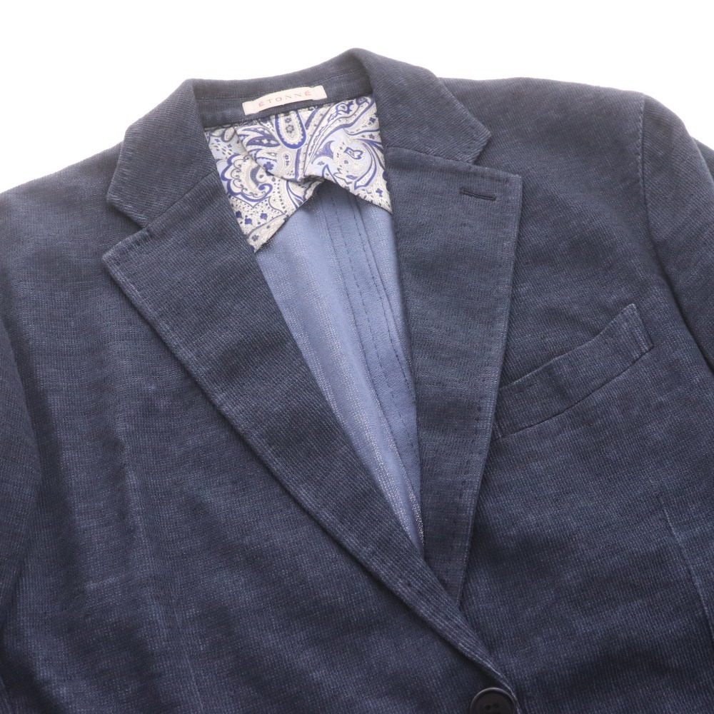 ETONNE エトネ テーラードジャケット 長袖 アウター 襟 フロントボタン 裏地総柄 メンズ M ネイビー 付属品:写真のものが全てです ●表記サイズ:M ○実寸 着丈:69cm 肩幅:44.5cm 身幅:50.2cm 袖丈:60.3cm ⇒ アパレル商品のカラー基準・採寸方法・海外サイズ換算表 (参考)トルソー(マネキン)は男女ともMサイズです。 素材:表地:綿49%麻49%ナイロン2% 裏地胴裏:ポリエステル 裏地袖裏:キュプラ | ||||||||||||||||