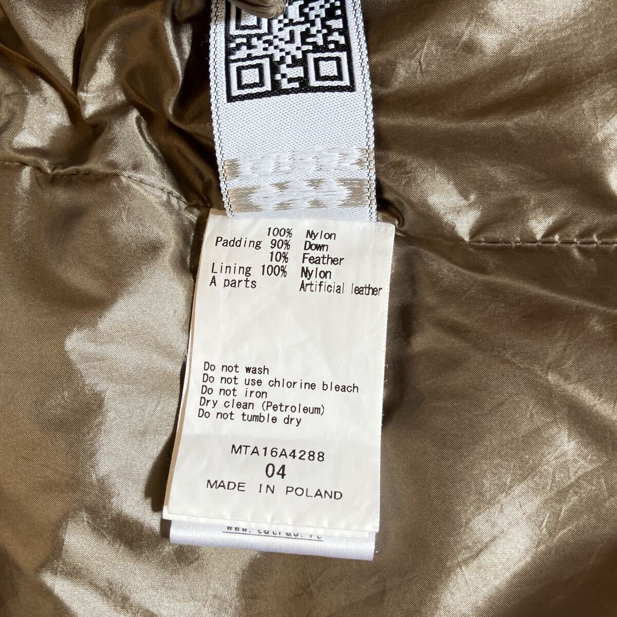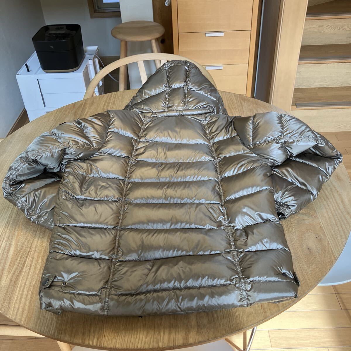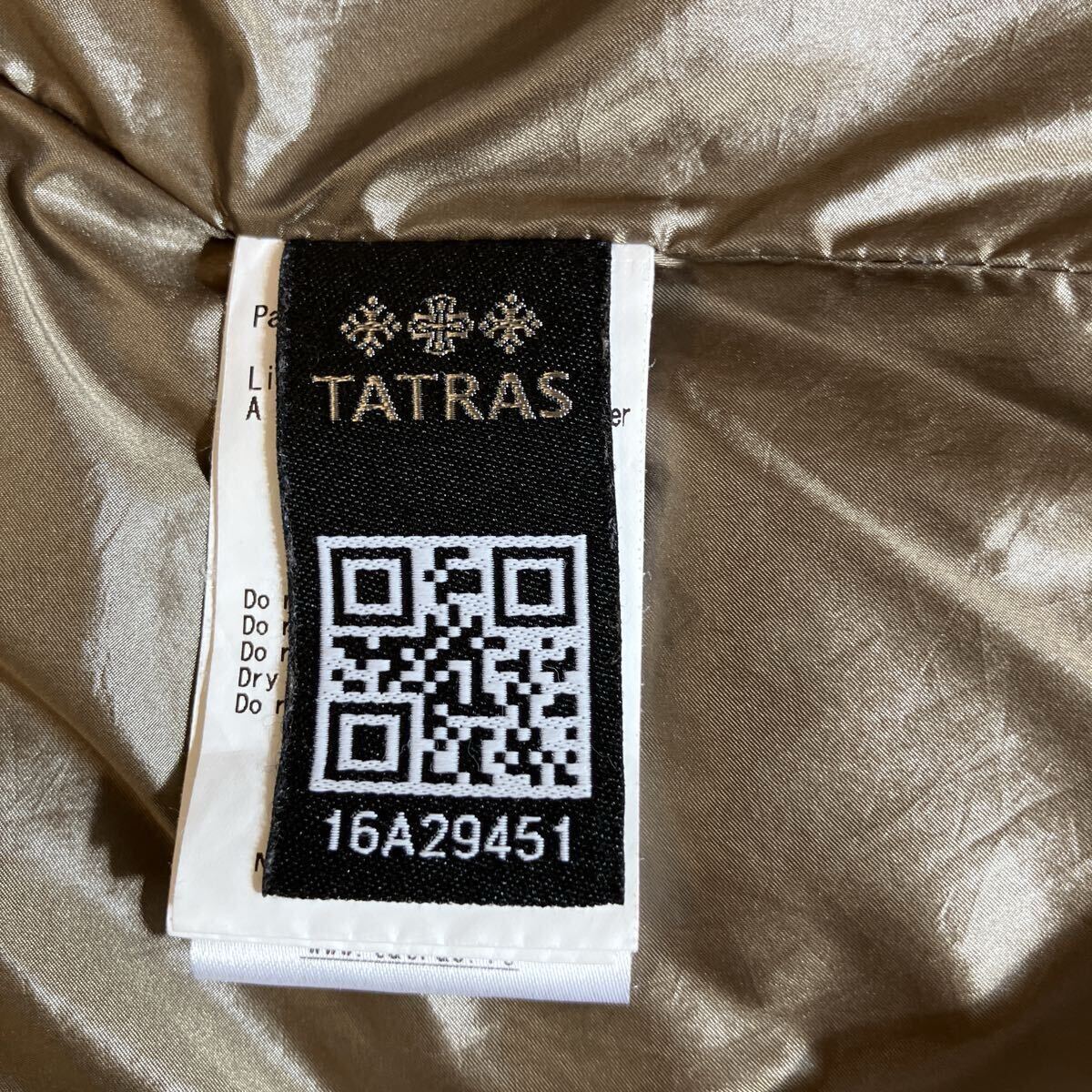 ☆タトラスのダウンジャケットです。お色は明るいシャンパンゴールドの様なベージュ色です。前に4つのポケットと右見頃裏に大きめのジップポケット1つがあります。フードは取り外しできます。ポーランド製になります。