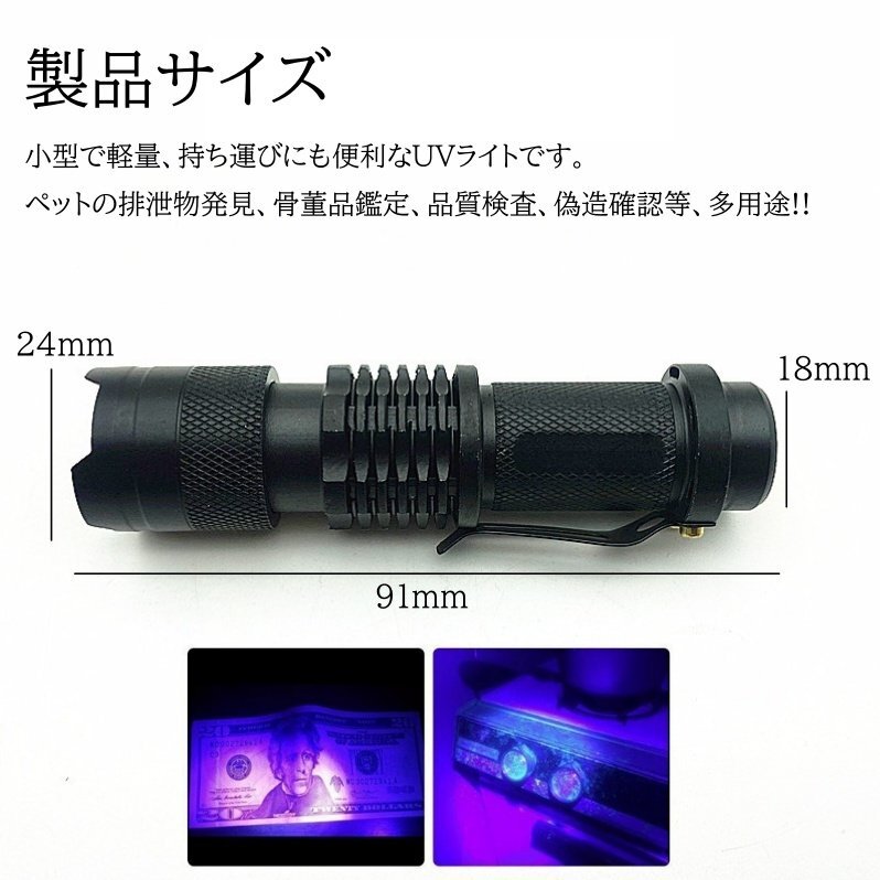 2個 紫外線ライト LED 365nm UVライト ブラックライト 片手 サイズ 小型 ジェルネイル レジン 硬化 汚れ確認 エギング ケイムラ 蓄光 ルア
