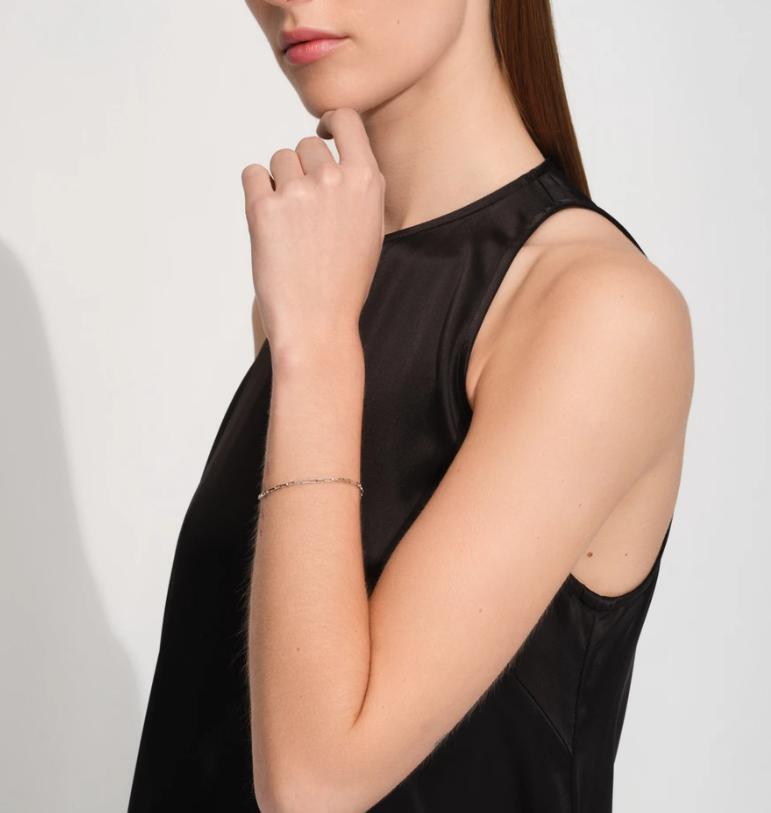 小さなスクエアカットが軽やかかつ繊細に連なったビリー・ブレスレットは、モダンでありながらタイムレスなアイテムです。