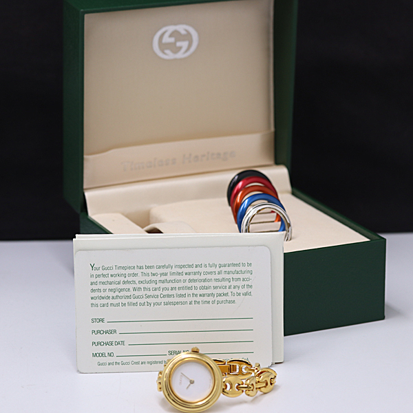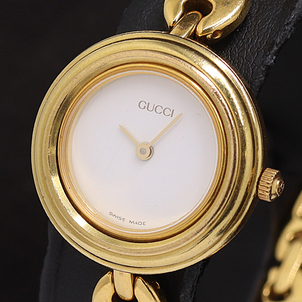 1円 保/箱付 稼働 グッチ チェンジベゼル 11/12.2 QZ ホワイト文字盤 レディース腕時計 4930200 10TLT MST