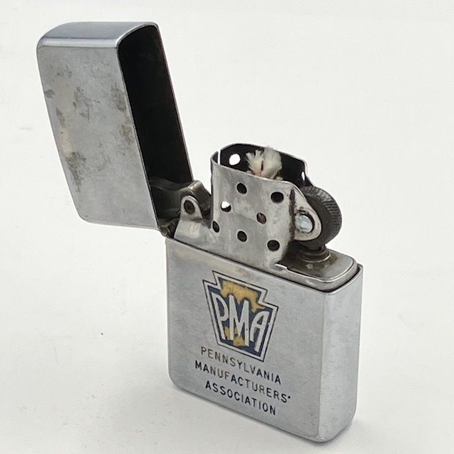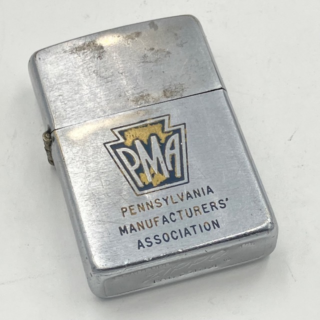 アメリカ・ペンシルベニア州の製造業者の業界団体であるPMA ? PENNSYLVANIA MANUFACTURERS’ ASSOCIATIONのジッポーです。使用感はありますが、コレクションとして、また実使用にもまだ十分使用可能な個体です。