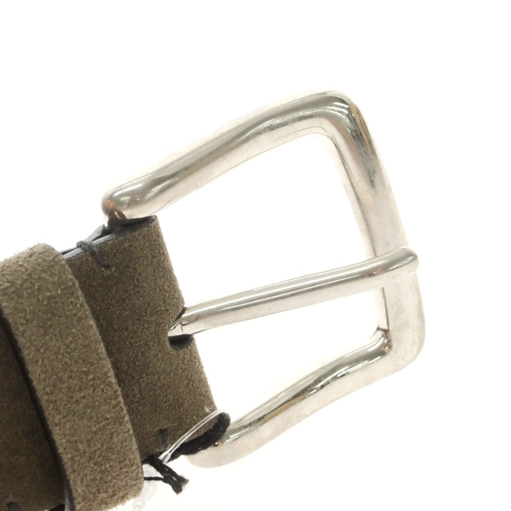 風合い豊かなスエード素材を用いたベルト。ステッチやコバ処理など、イタリア製らしい丁寧な作りになりまして、シンプルなデザインだからこそ高級感が際立つ一本になっています。