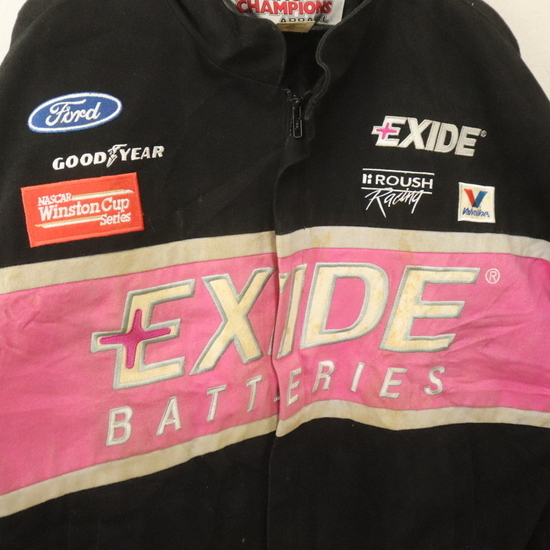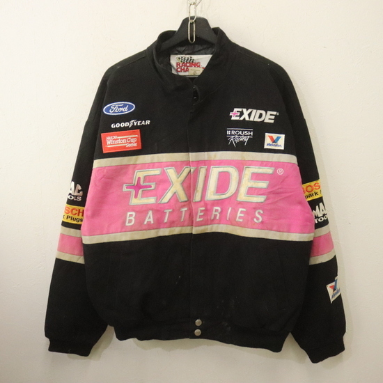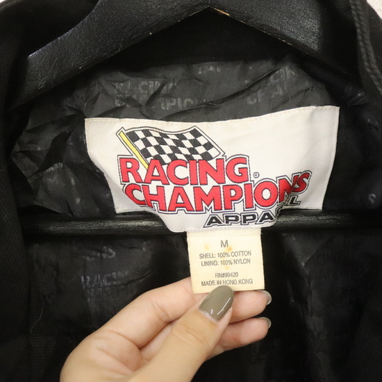 商品名 W860 90sビンテージ RACINGCAMPION Ford GOODYEAR レーシングジャケット■1990年代製 表記Mサイズ 黒 刺繍 EXIDE NASCAR アメカジ 00s