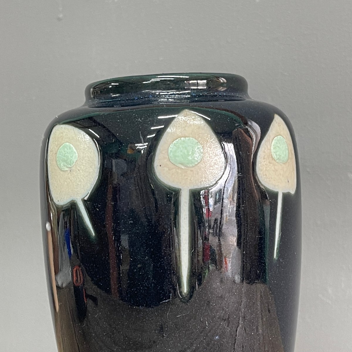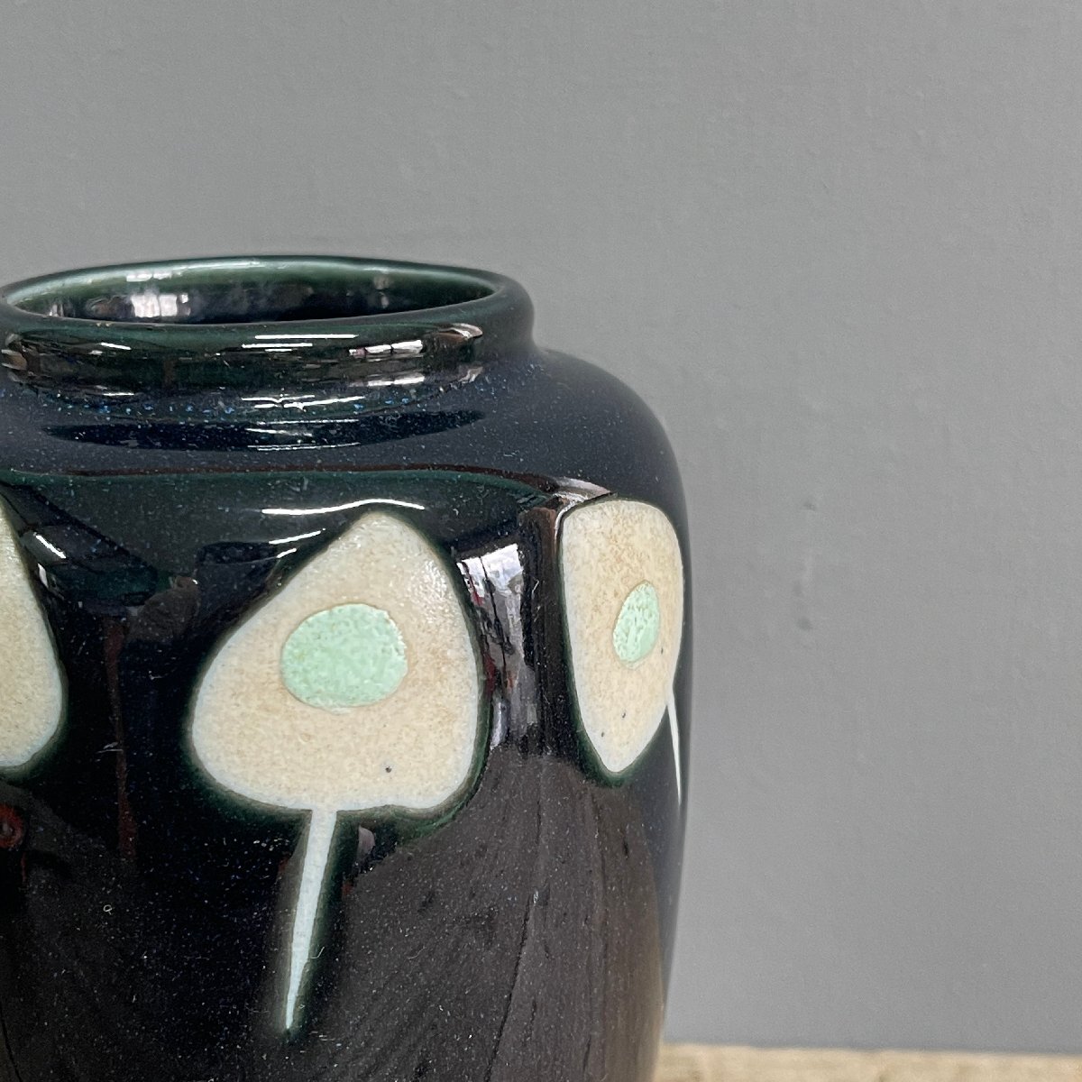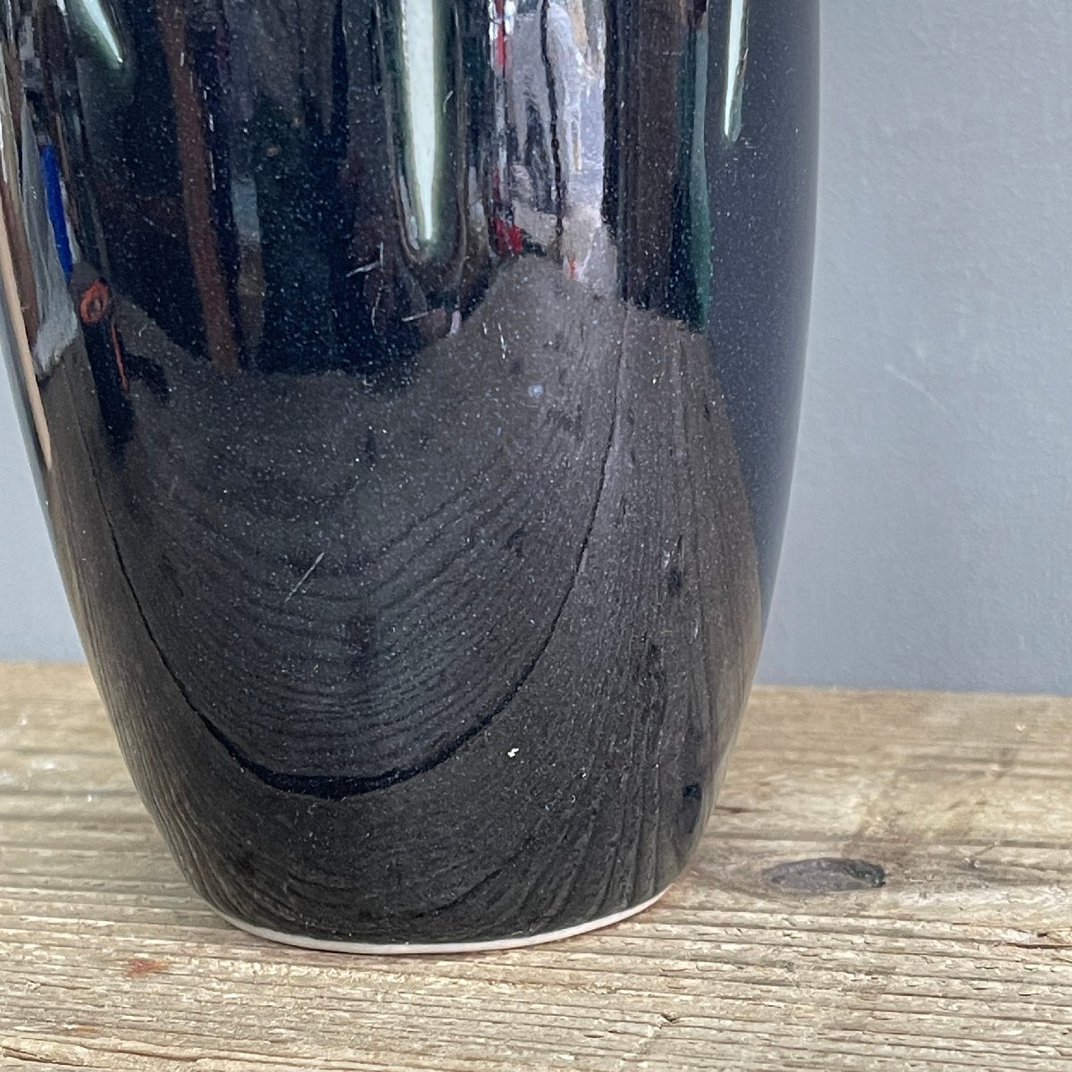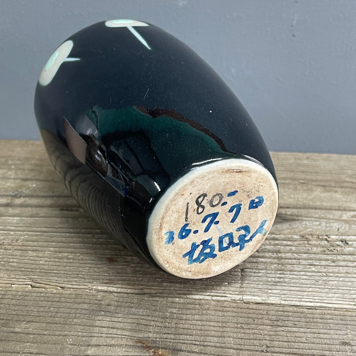 | 中古 北欧 花瓶 花器 紺色 植物柄 サイズ直径10×16.5㎝ |