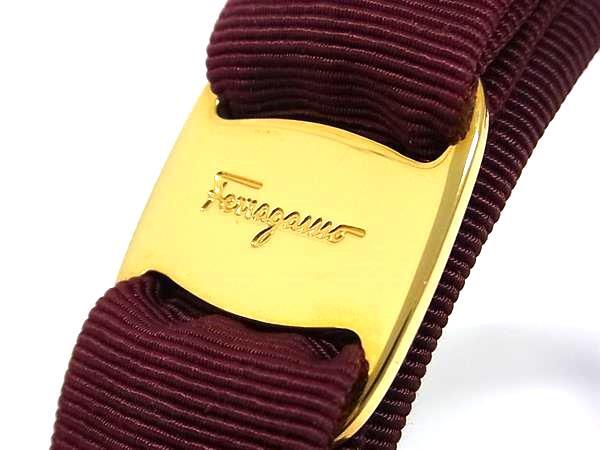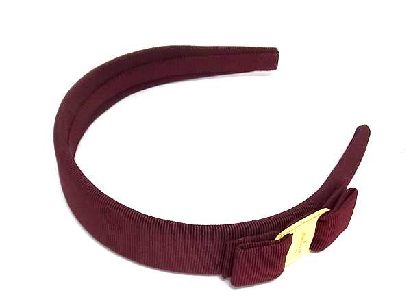 ■極美品■ Salvatore Ferragamo フェラガモ ヴァラリボン キャンバス カチューシャ ヘアアクセサリー レディース ボルドー系 FR5539