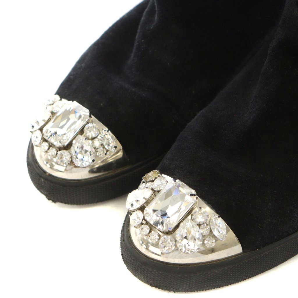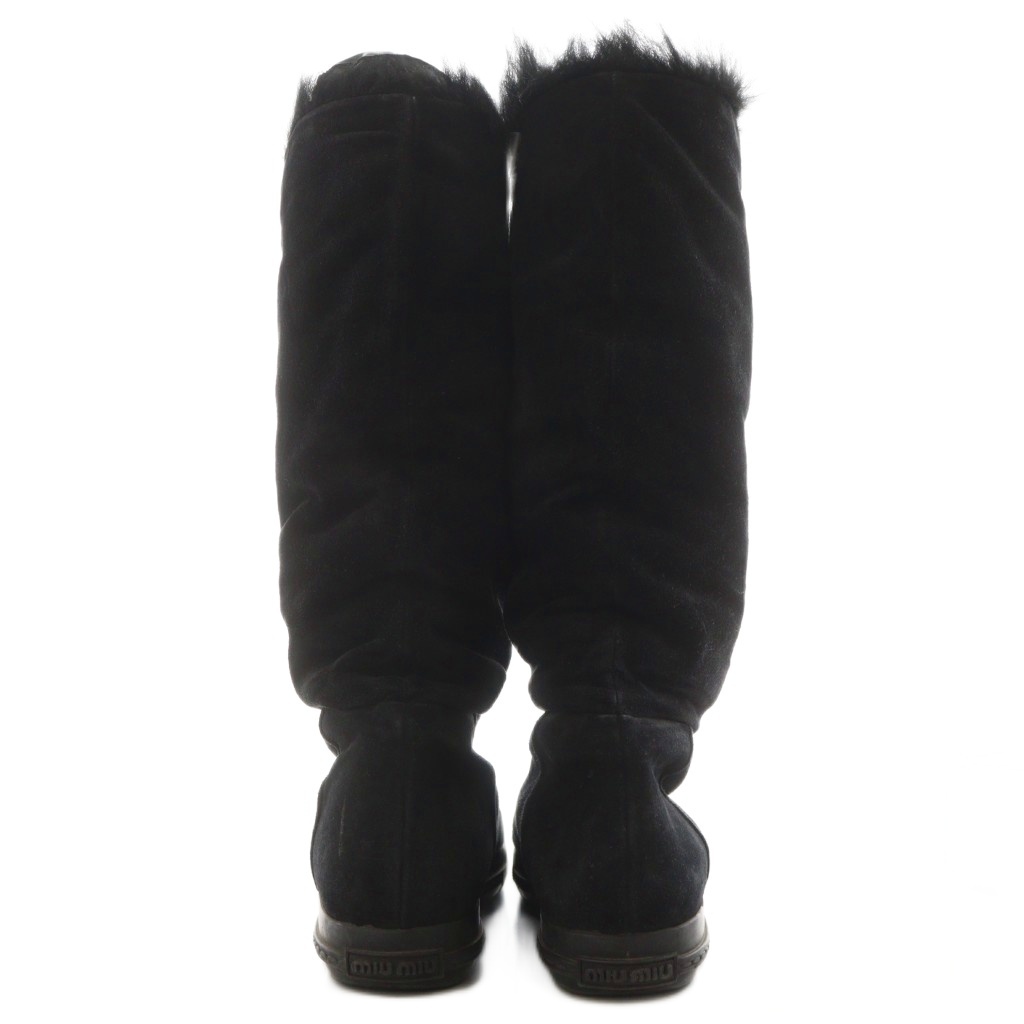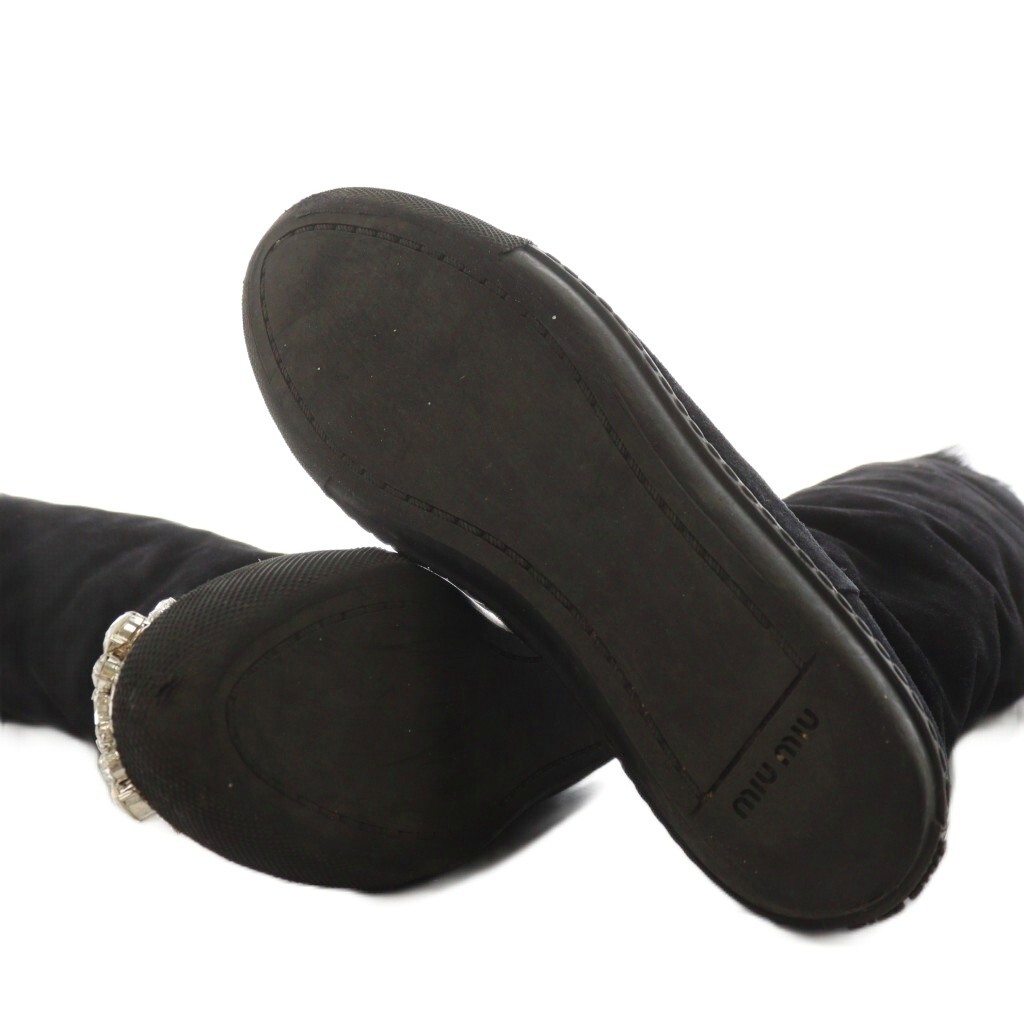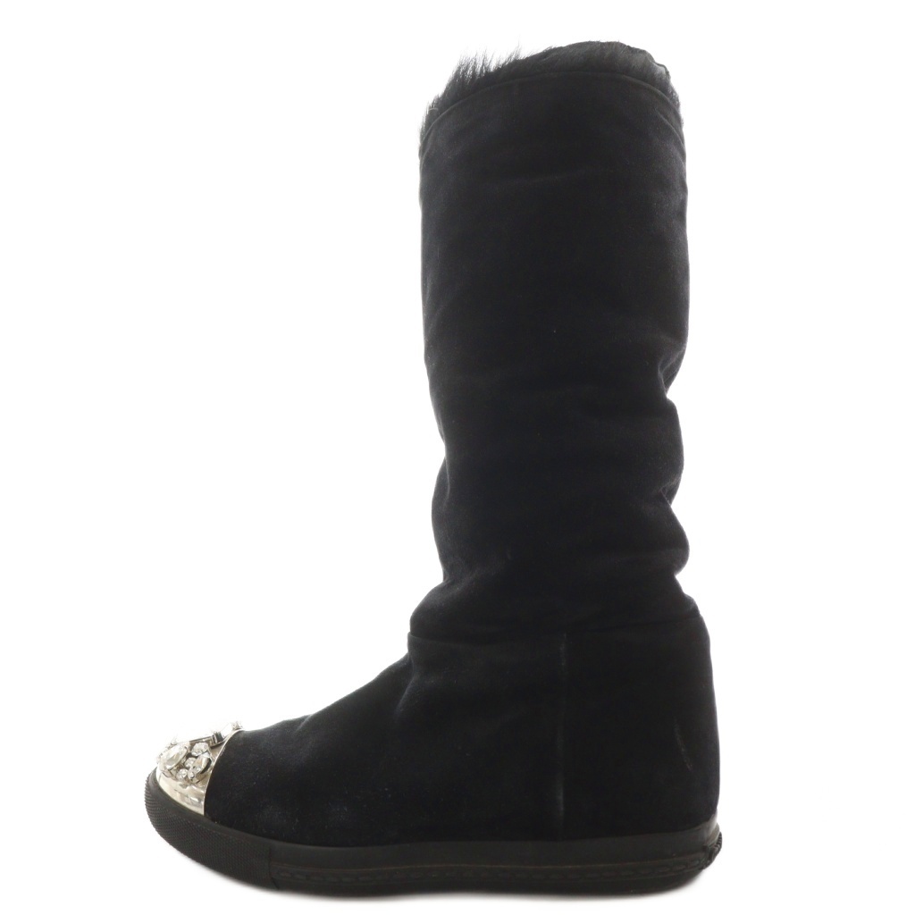 ミュウミュウ miumiu ムートンブーツ ロングブーツ ビジュー ボア スエード 37 黒 ブラック 5W9461 /AN18 レディース