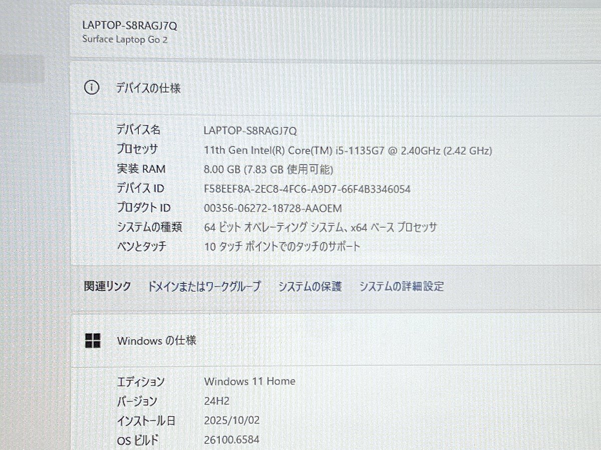 仕 様 | 11th Gen Intel Core i5-1135G7 8GB SSD256GB 12.4型 Win11 |