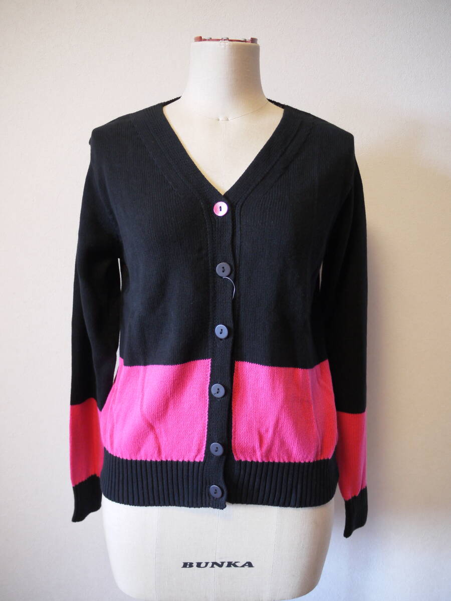 CORSO ROSSO コルソロッソ Vネックカーディガン ブラック×ピンク 3 新品タグ付き