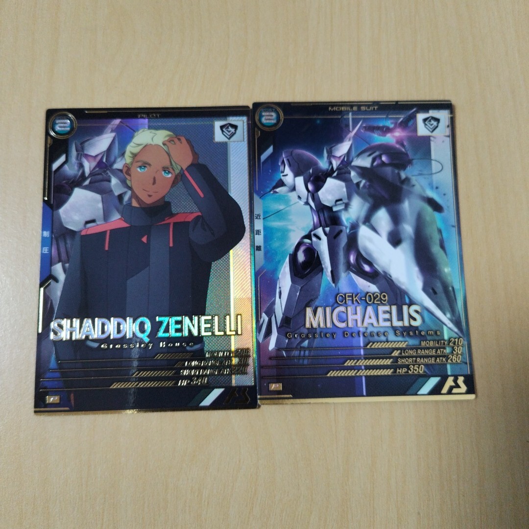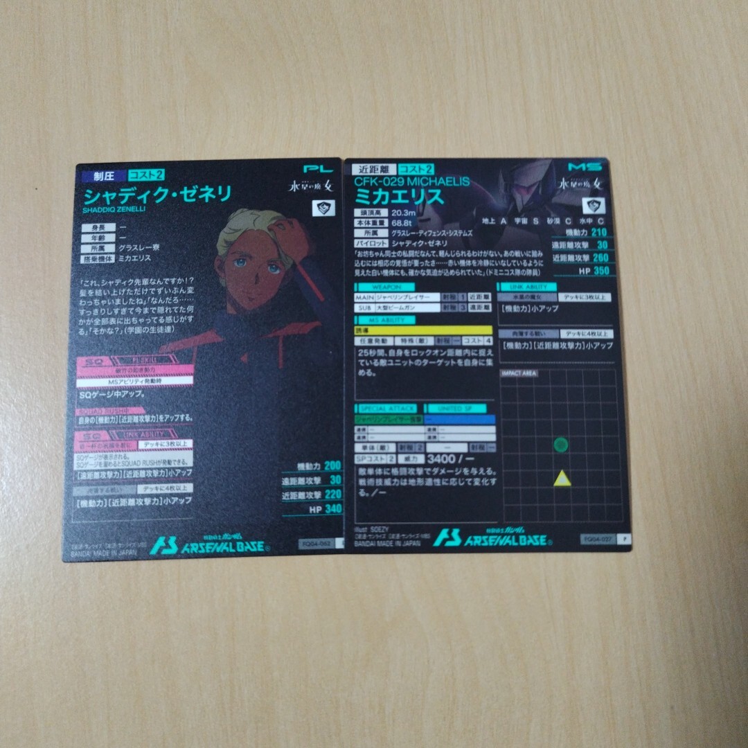 ガンダムアーセナルベース、Pレア、ミカエリス&シャディク・ゼネリの出品となります。未使用品です。排出後、スリーブに入れて保管していますが初期キズなど気になさる方はご遠慮ください。配送料金は梱包代込みで全国一律、120円とさせていただきます。他の出品との同梱は対応いたします。ノークレム、ノーリターンにてお願いいたします。