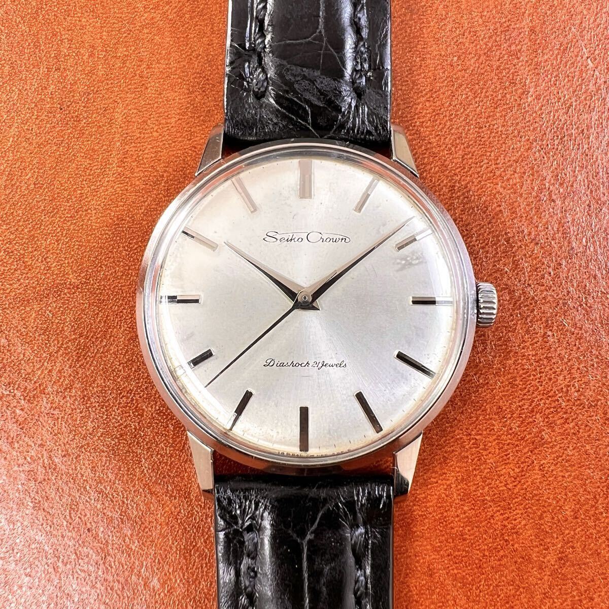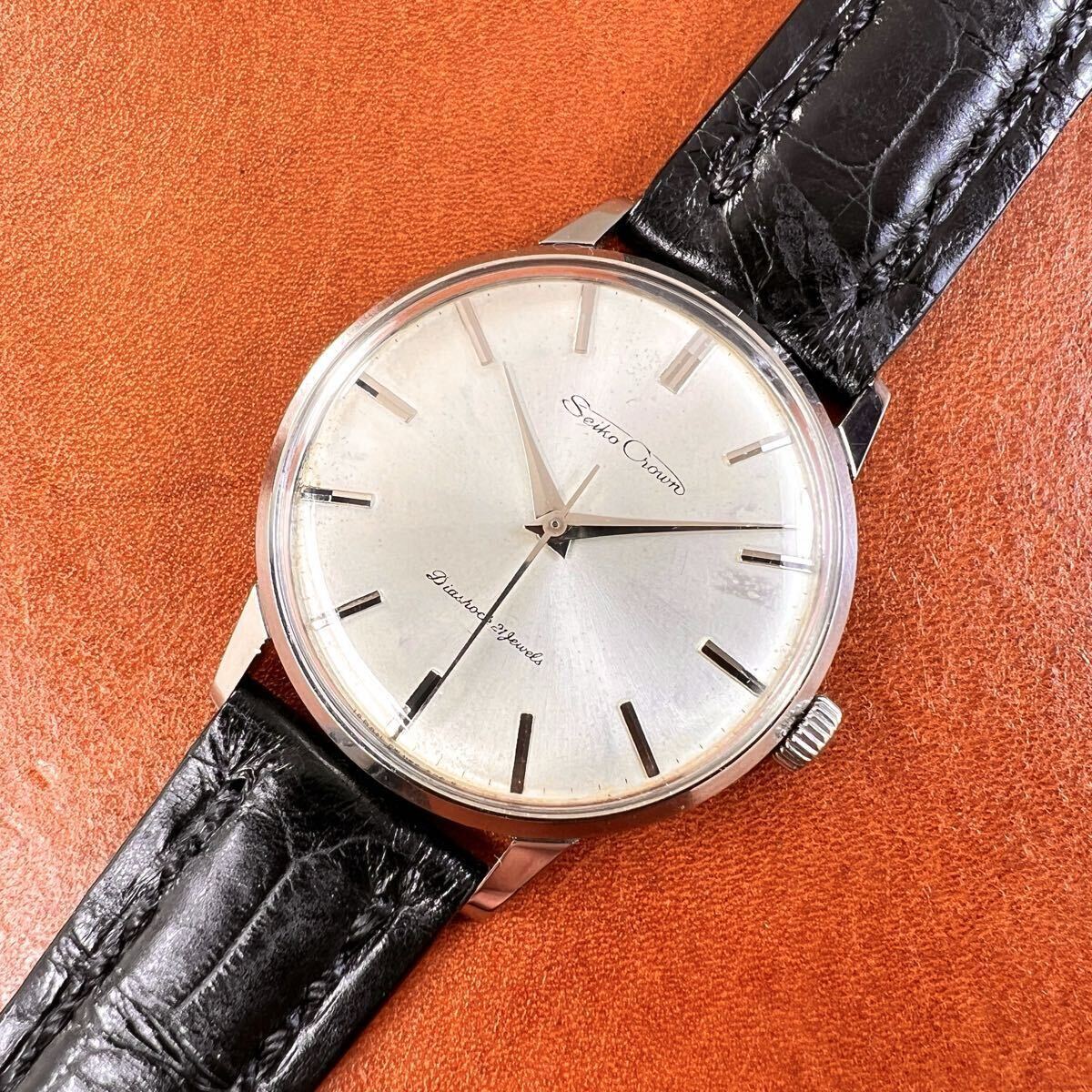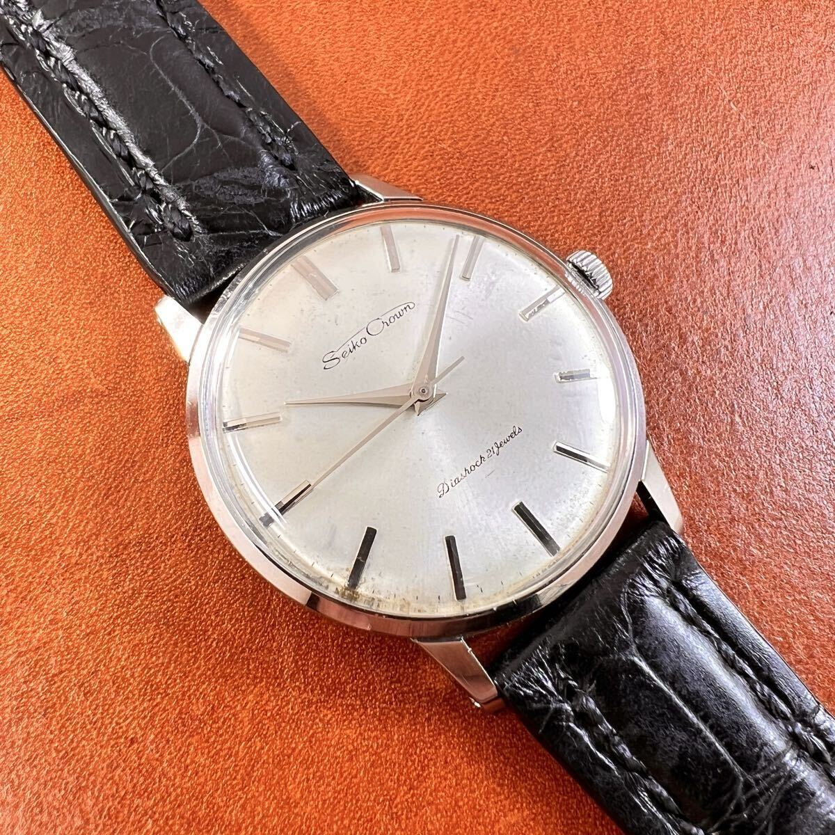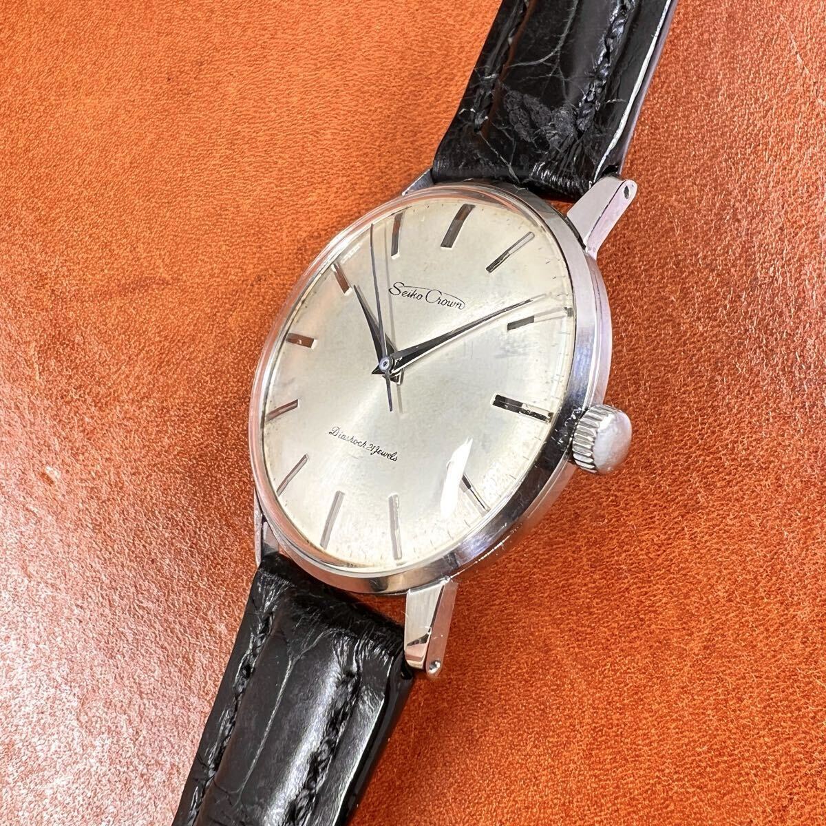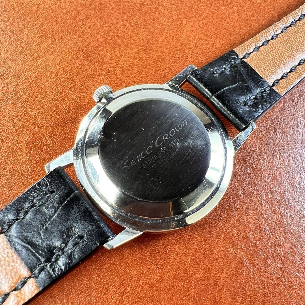 OH済! 極美品! SEIKO Crown 21石 クロコダイル本革手縫いベルト Dバックル付 セイコー クラウン J15003E SS 手巻き 国産 ビンテージ 腕時計