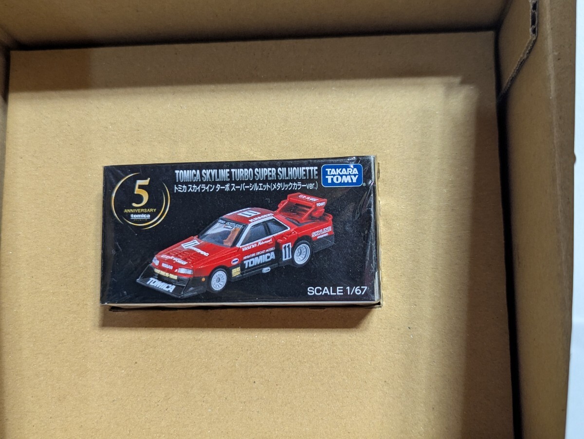 ・商品名 … トミカプレミアム 5周年記念 オリジナル トミカプレミアム プレゼントキャンペーン「トミカ スカイラインターボ スーパーシルエット(メタリック カラーVer.)」限定:5,555個