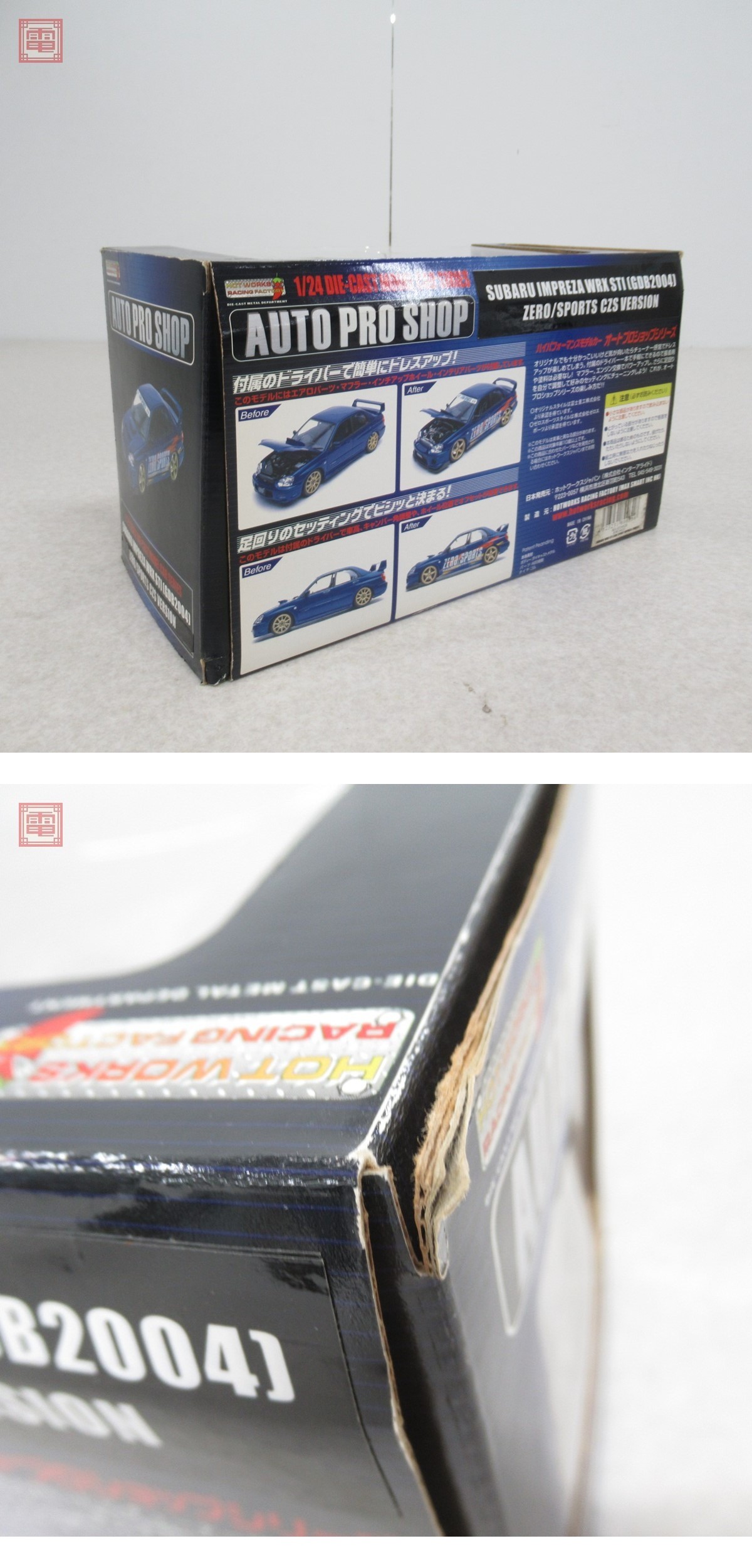 ホットワークス 1/24 オートプロショップシリーズ スバル インプレッサ WRX STI GDB2004 ゼロ スポーツ CZS ■外箱にスレ、汚れがあります。 ■ボディにスレがあります。 ■台座に固定されている為、外さずに行える範囲でのチェックを行っています。 ■写真のものが全てです。付属物の有無や状態については写真からご判断ください。 ■付属物については細かいチェックはしておりませんので、万が一、欠品があったり余計な物が入っていたとしてもご了承ください。 ■商品到着後、当店の保証期間中は、商品及び箱や取説、付属品などを1つでも廃棄や破損をしないようにお願い致します。廃棄や破損をした場合、商品に問題があった場合でも対応や返金などの対処ができなくなります。 ■商品によりますが、発売されてから10年以上経過している中古品である事をご理解頂いた上でご入札をお願い致します。なお、新品や美品、また特記事項がある場合は別途明記します。 | |||