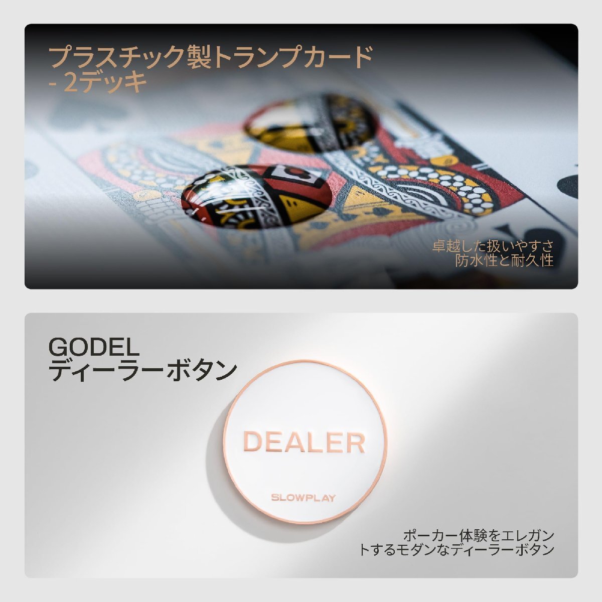 ブランド:SLOWPLAYカラー:500枚(チップバリュー表記あり)サイズ:500ChipsWithNumberedValuesGodelは、SLOWPLAYの業界トップの技術力で、シンプルさと遊び心を融合させた、当社が誇る高級クレイ製ポーカーチップセットです。ご自身だけでなく、ポーカー愛好者にピッタリのプレゼントです。