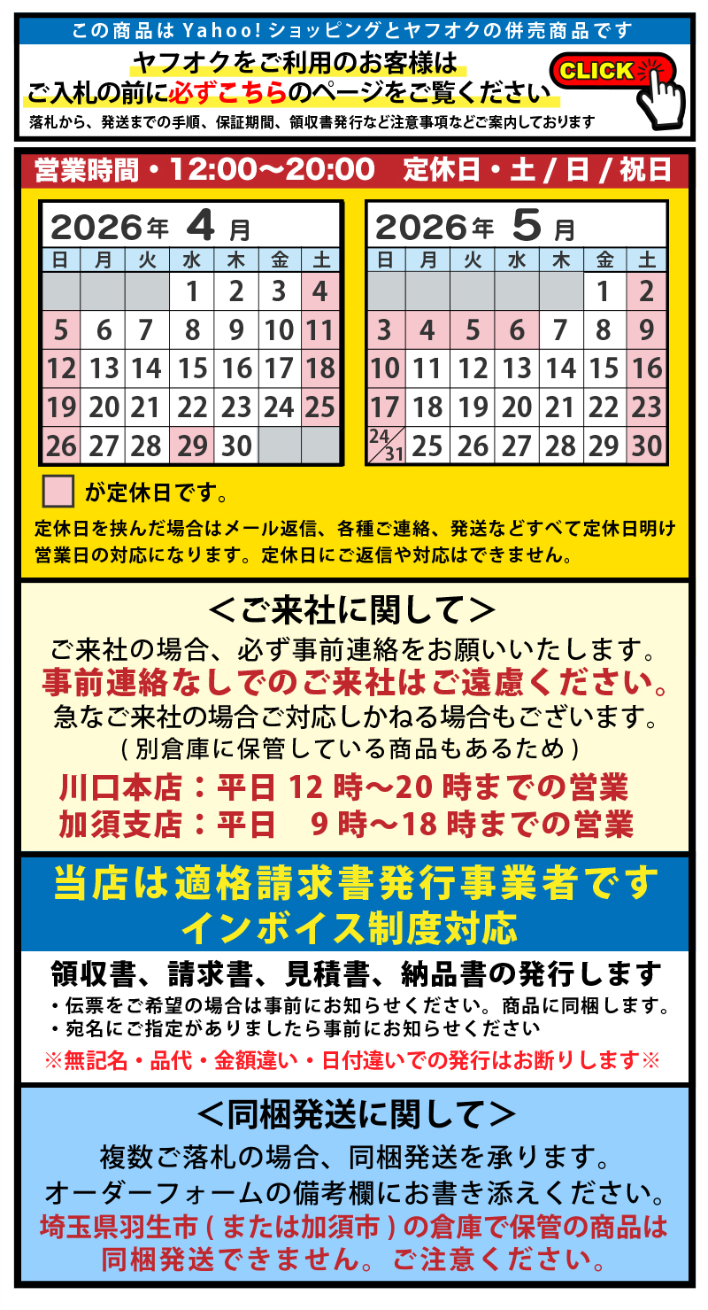 ※沖縄県、離島への発送は佐川急便以外の運送業者を利用します。送料はお問い合わせください。 | |||||||||||||||||||||
