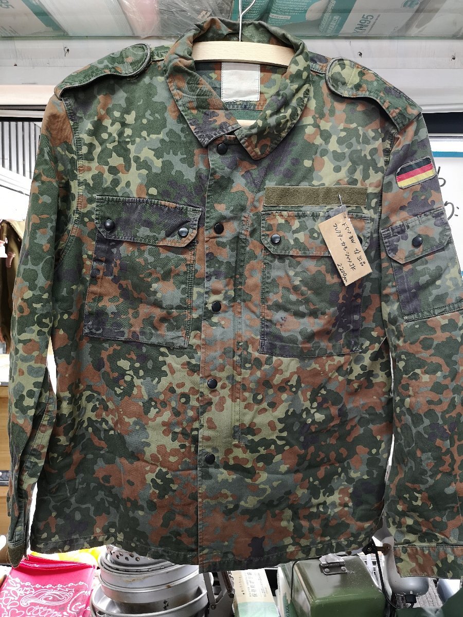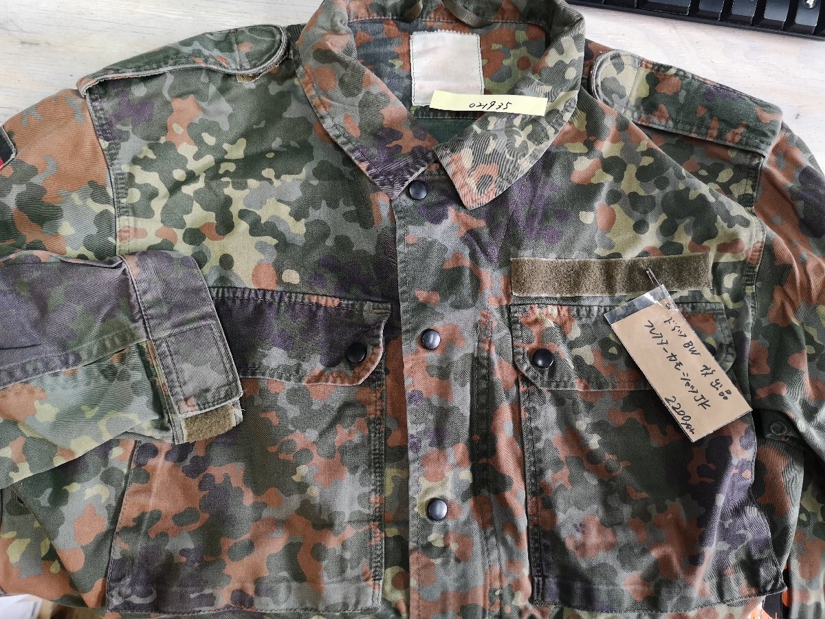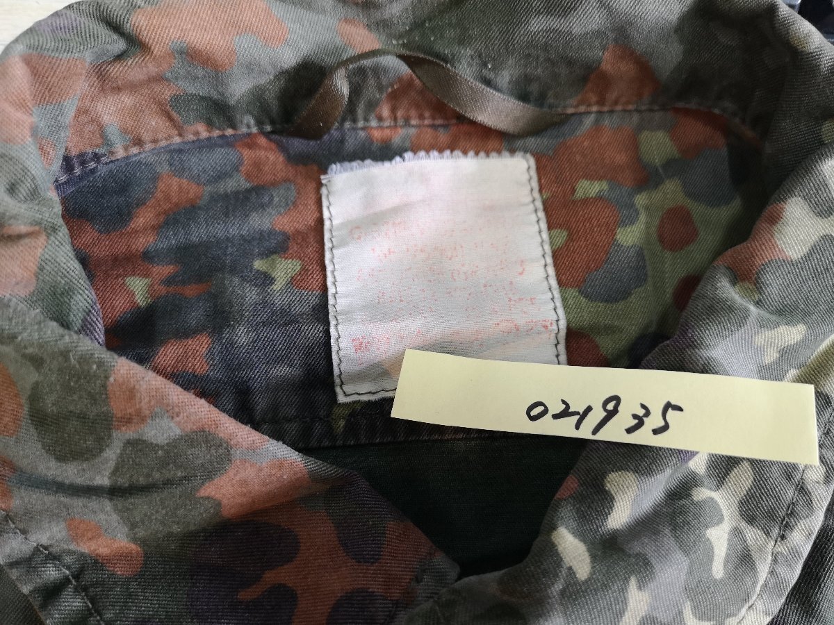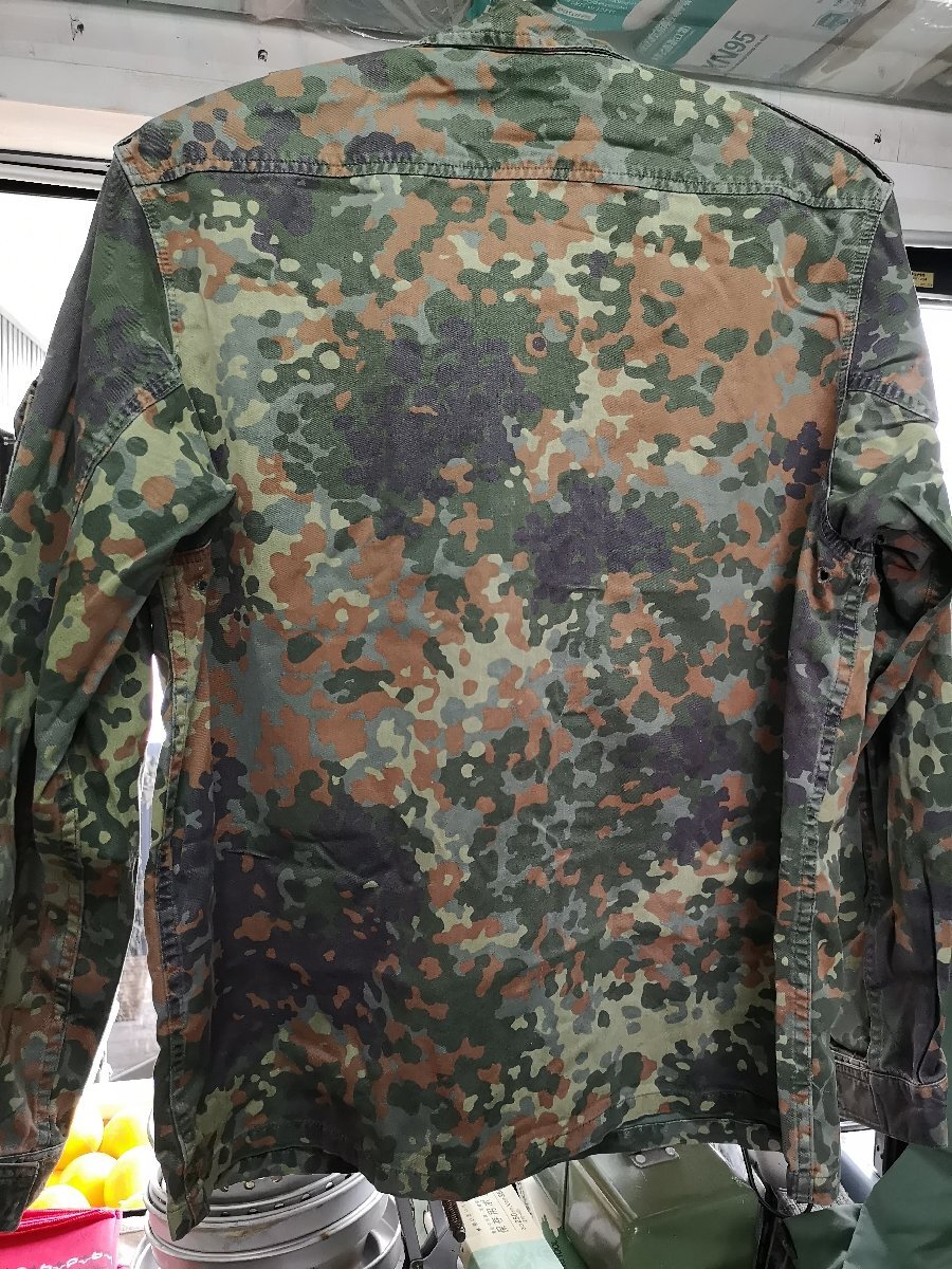ドイツBW放出のフレクターカモのシャツジャケット、薄手の生地ですがフロントはジッパーとホックの併用で便利です。 これは表示は?で、丈65cm・身幅57cm・肩幅48cm・袖58cm程度になります。 コンディションはいい感じに色落ちし特に汚れや補修もないです。 沖縄離島を除く全国500円でお送りいたします、落札価格にプラスでお願いいたします。