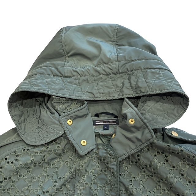 TOMY HILFIGER トミーヒルフィガー XSサイズ 刺繍 ジャケット 7部丈 2WAY刺繍ジャンパー フード取り外し可能 HMY |