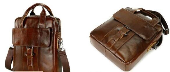 特売!牛革バッグビジネス縦型手提げブリーフケース9.7インチレトロショルダーバッグ