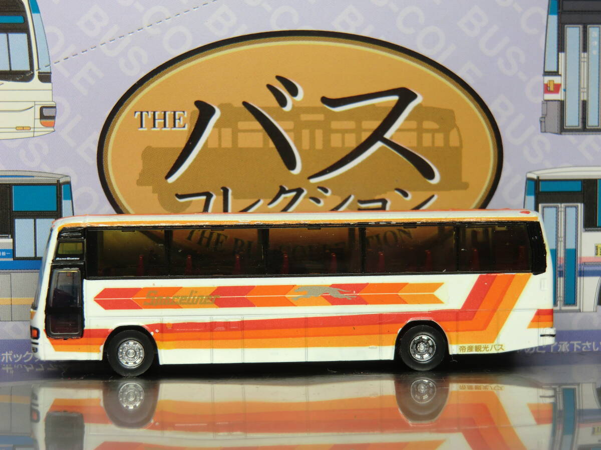 バスコレクションを使った改造車です。1度解体してオリジナルの塗装を離して白色をスプレー塗装しデカールを貼り付けて細部をタッチアップし、クリアをオーバースプレーしました。車体内部は加工していません。素人の工作ですので細かい傷や塗装のムラがあります。気になる方は入札をお控えください。