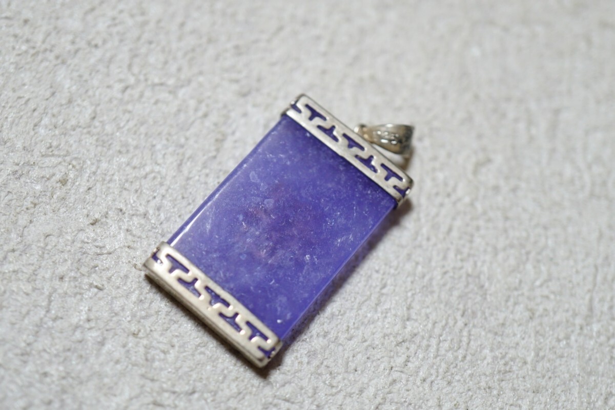 647 天然ラベンダーヒスイ 翡翠 ペンダント ネックレス ヴィンテージ アクセサリー SILVER 925刻印 天然石 宝石 色石 カラーストーン