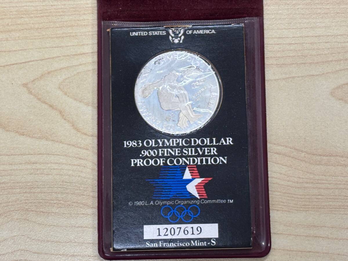 2625 1983年 アメリカ ロサンゼルス オリンピック 記念メダル 1ドル 銀貨 FINE SILVER シルバー 900 プルーフ コイン ケース付き | ||