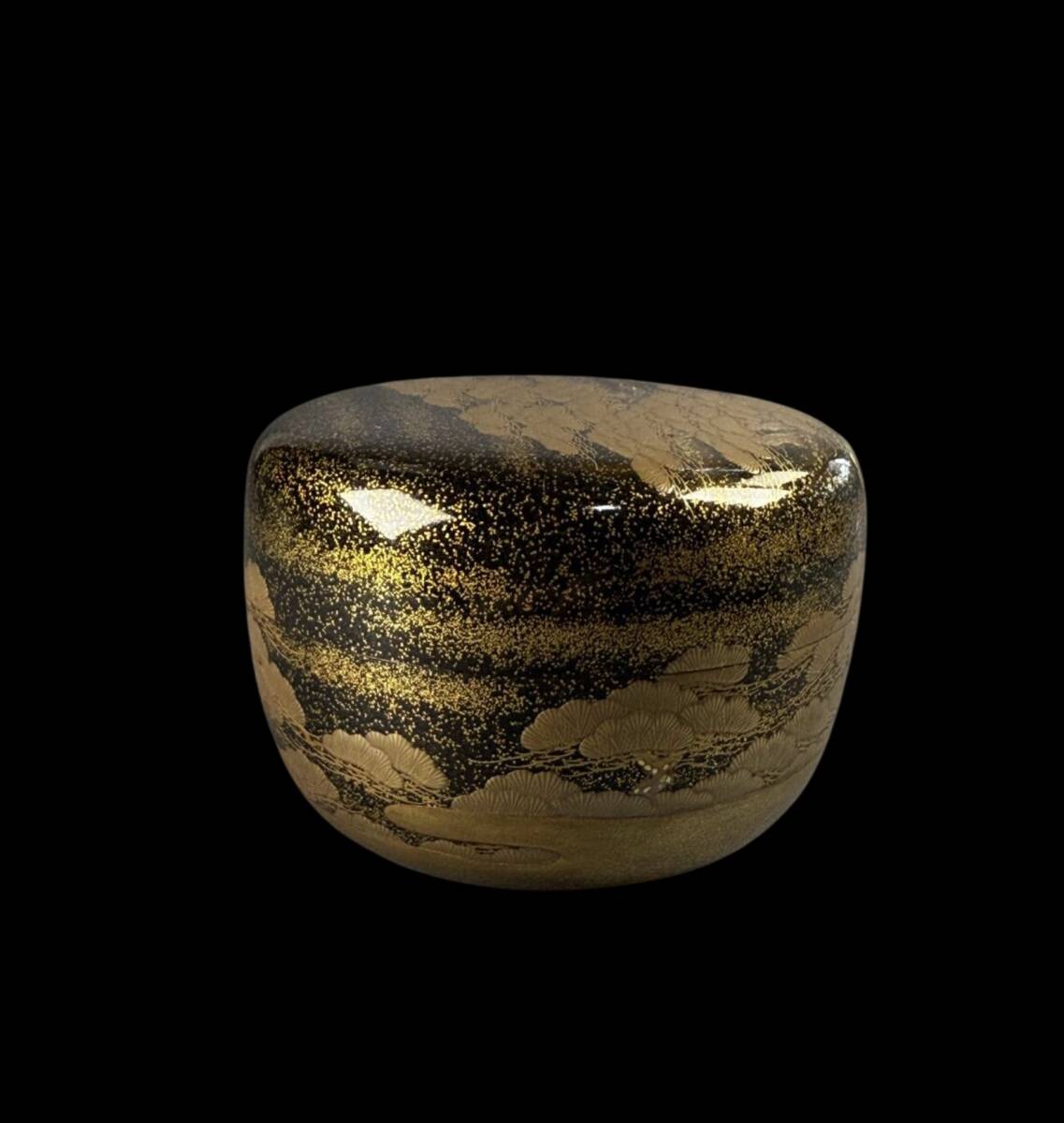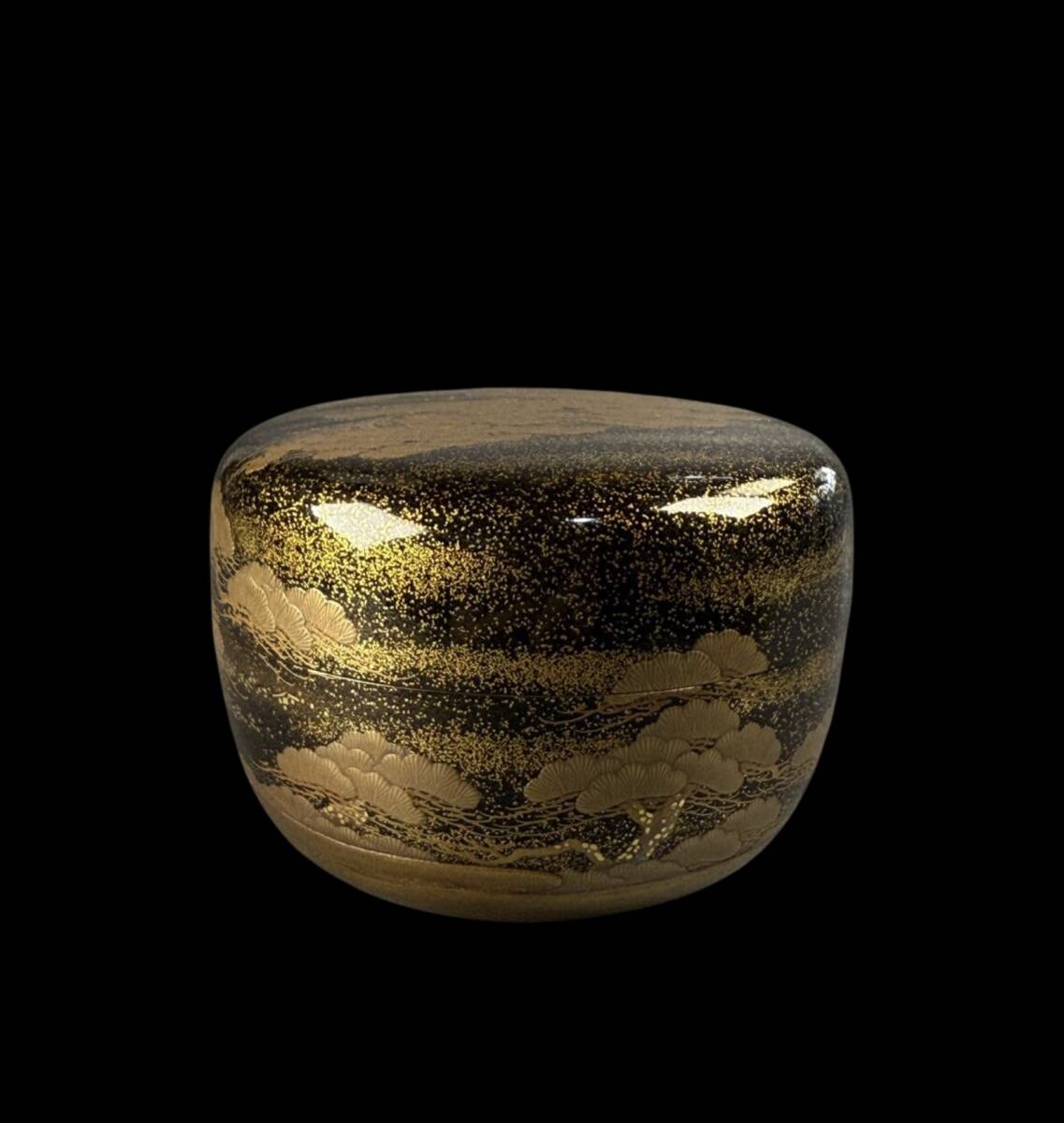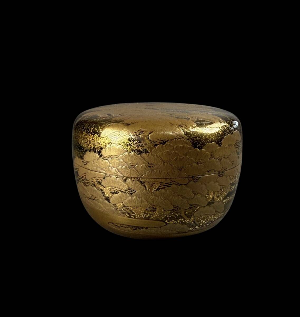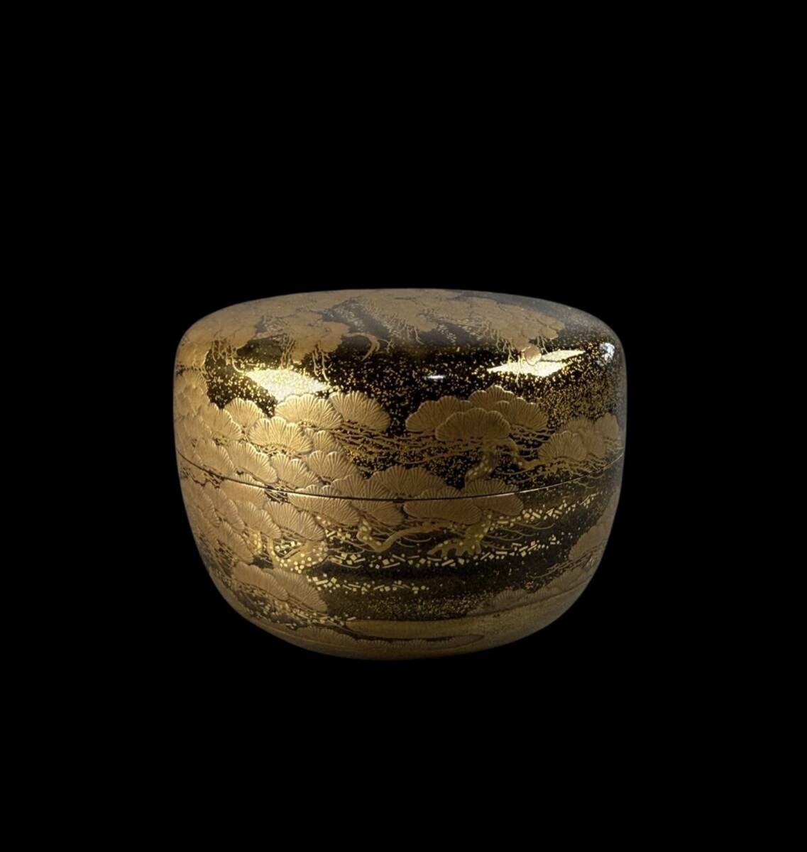 【偲】時代物 金蒔絵 松千鳥蒔絵 平棗 茶入 茶道具 e-29