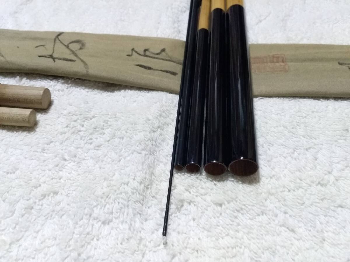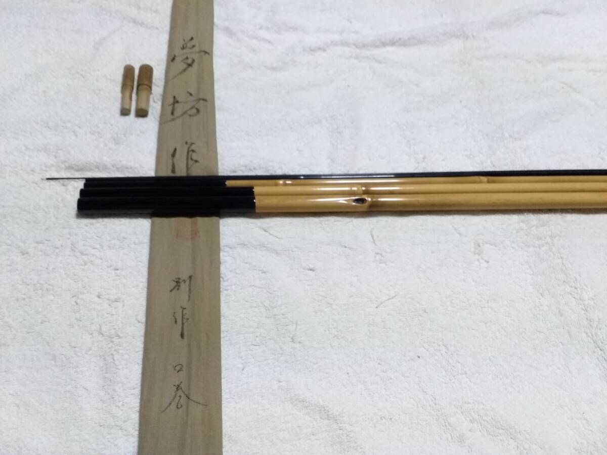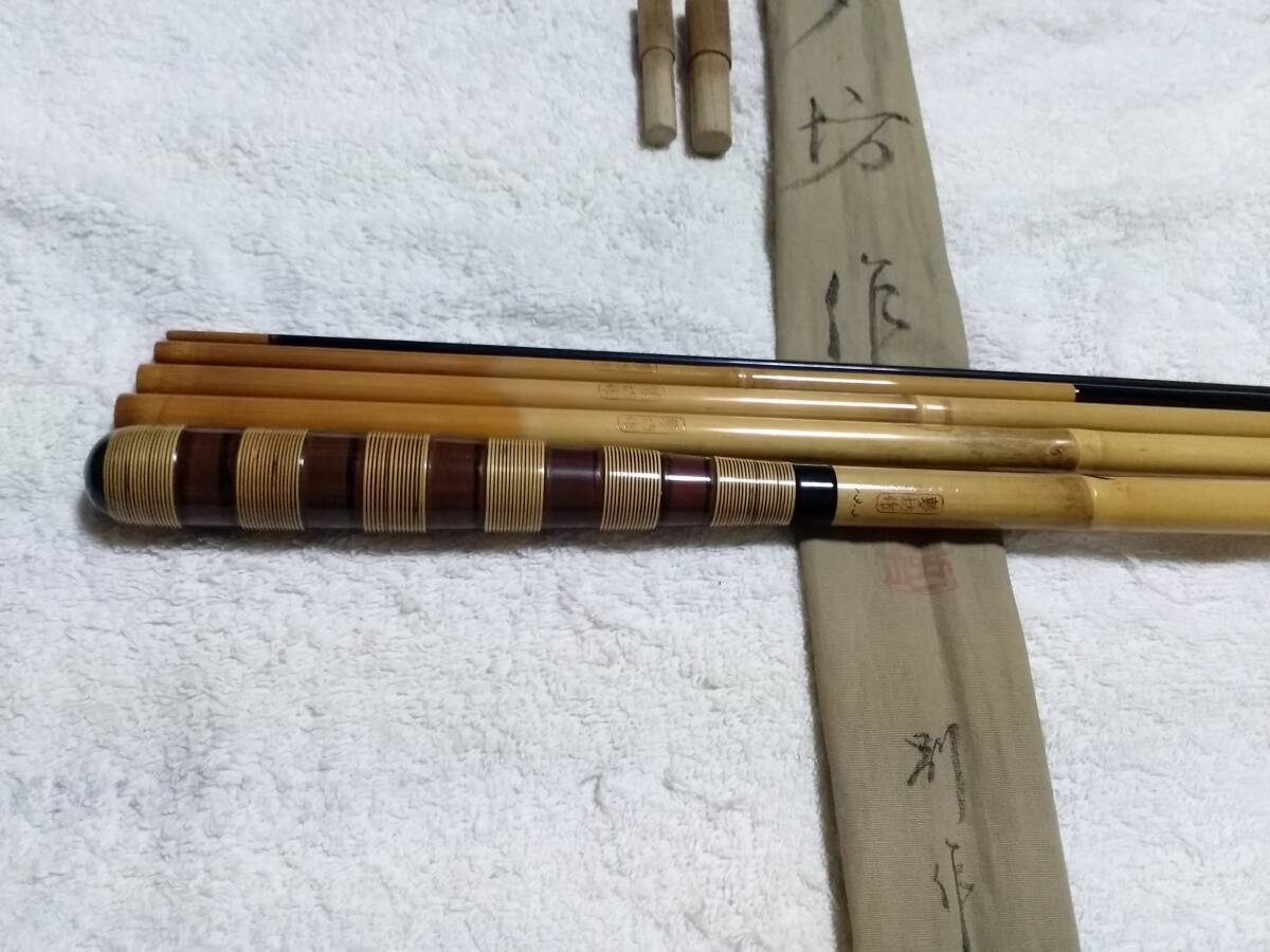 付属品は画像の通り、オリジナルの口栓、竿袋になります。商品の状態ですが、口割れ、欠け、深い傷など無く綺麗です。薄い傷があると思いますが、艶もあり良い状態だと思います。私感的には綺麗な状態だと思います。穂持ちに少し癖があります。オークション終了後48時間以内にご連絡の方のみご入札下さい。落札後取り引きナビにてご連絡させて頂きます。ご入札後のキャンセル、返品。クレーム等受付られません。送料はヤマト運輸の元払いで、九州から関東まで1600円です。宜しくお願いします。元竿13.6ミリ 穂先3.7ミリ