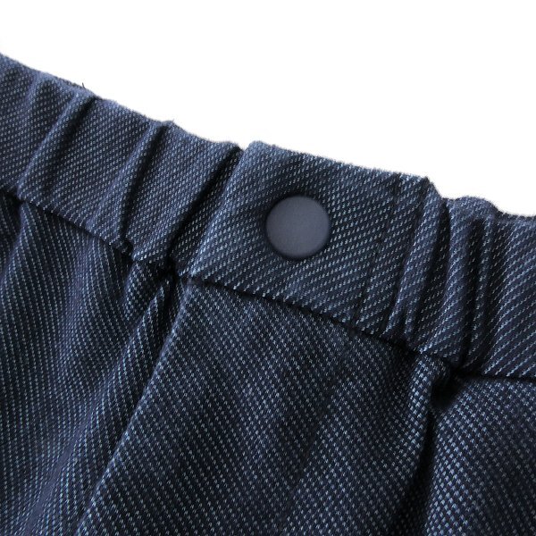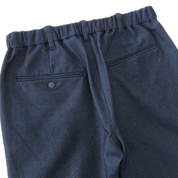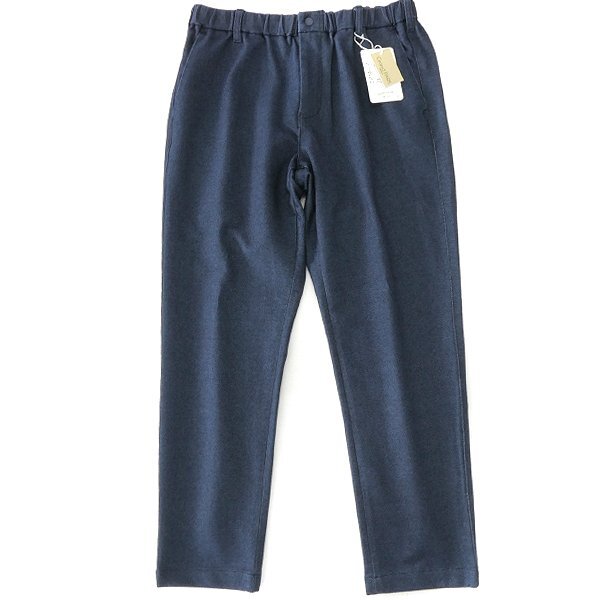 普通のデニムと違って柔らかく、ジャージのようなストレッチが効いた素材を使用しています。 一般的なデニムは裏が白の織物構成になっていて色落ちの度に白くなりますが、 この生地は裏も表地と同系色にしているので白っぽくならず、色止め加工をする事を施して色が落ちにくくなっています。 シルエットは太もも周りは程良いゆとりがありながら足首にかけて細くなるテーパードシルエットをベースに、腰回りにゆとりを出して膝からのテーパードをより強調しています。 ウエストもゴムが入ったイージーパンツ仕様、更にベルトループも付いていて、 表面が綺麗なデニム素材なのでカジュアルでもきれい目でもコーディネート出来る万能性もポイントです。 【デザイン】 ・テーパードシルエット ・ジッパーフライ ・ノータック ・ウエストゴム入り、ドローコード入り |