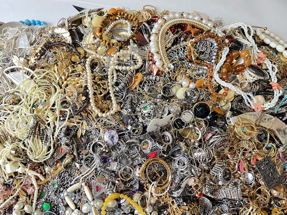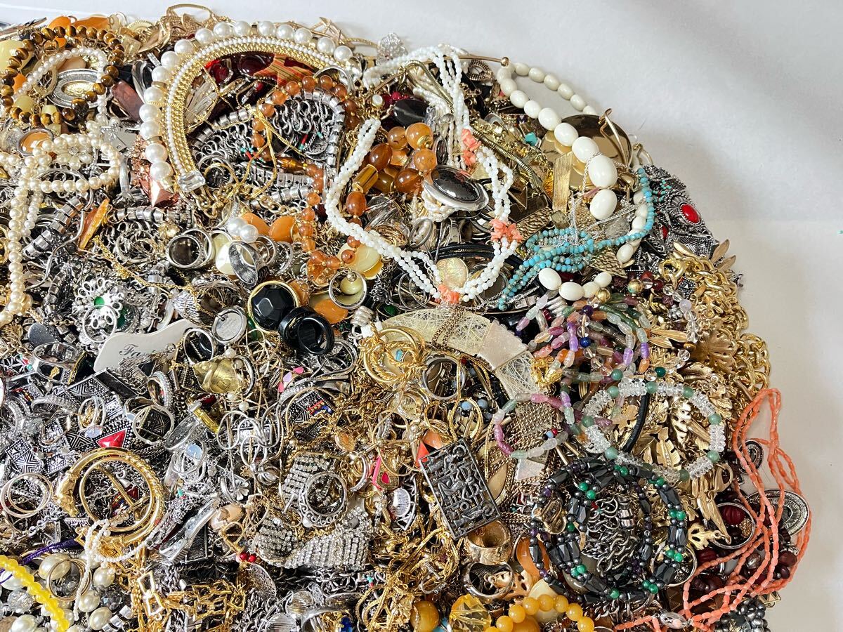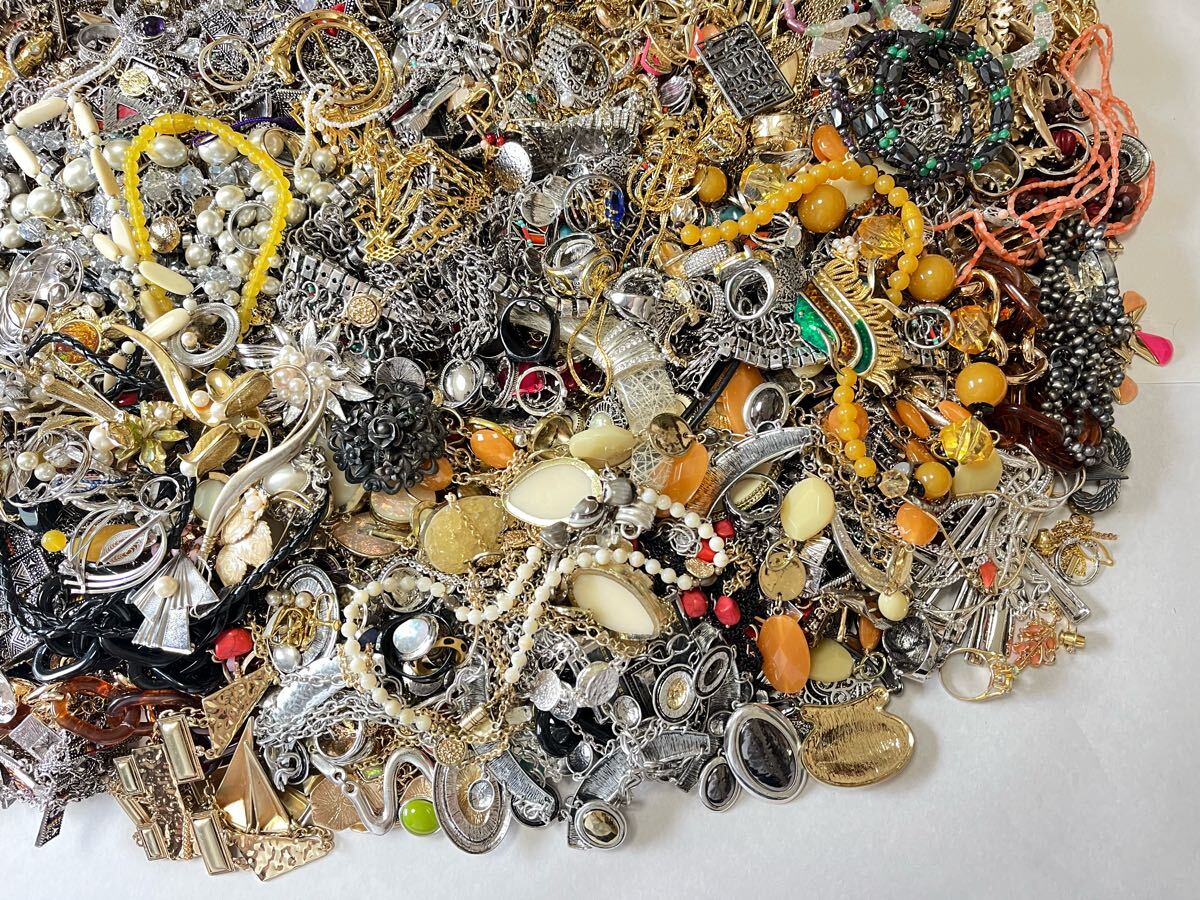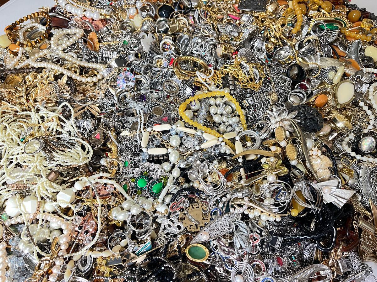 本商品は、ネックレス、ブローチ、イヤリング、カフス、タイピン、リング(指輪)、メッキ・ゴールド・シルバー(刻印含む)・アンティーク調・現代品等を多数組み合わせた、おまとめ約30kgセットです。写真に写っているものが全てとなります(画像をご確認ください)。