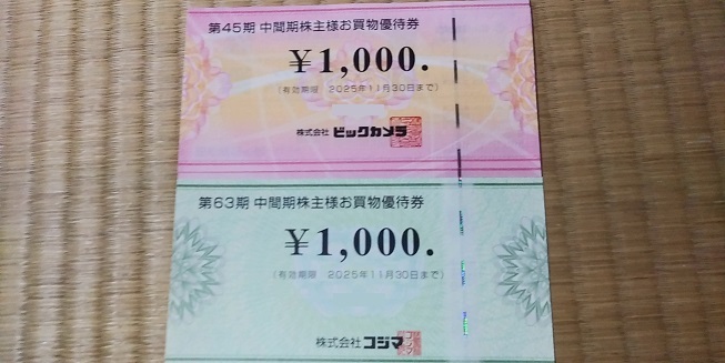 全国のコジマ ソフマップ ビックカメラで使えるコジマとビックカメラ株主優待券、