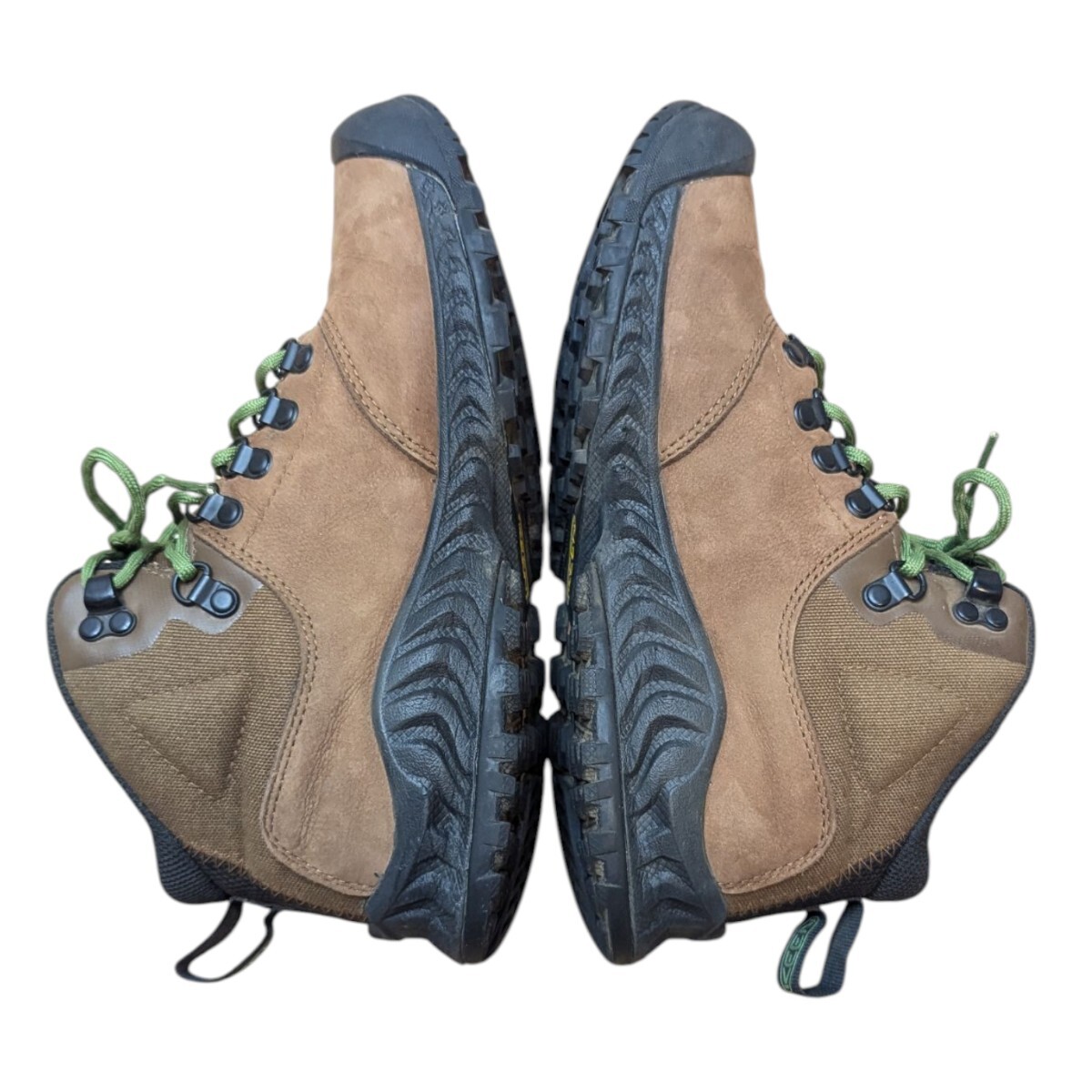 高いクッション性を誇るソールユニットとKEEN最先端の技術をハイブリッドした、ハイパフォーマンストラベルトレイルシューズ。クラシカルなアルプストレッキングブーツデザイン。しなやかで耐久性に優れたウォータープルーフレザーを採用し、トレッキングからライトハイクまでのアウトドアフィールド、そしてファッションまで幅広い用途に対応。足首のサポートが必要なアクティビティに適したミッドカットデザイン。
