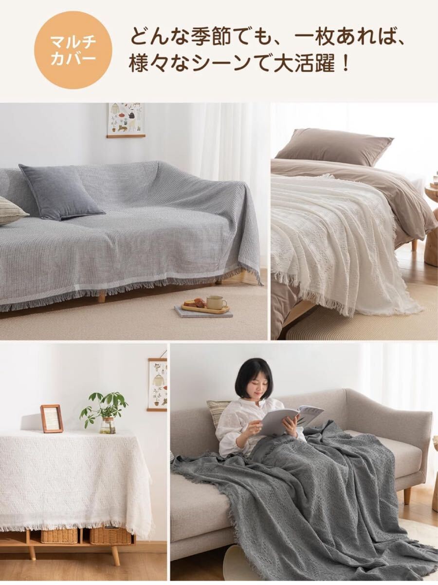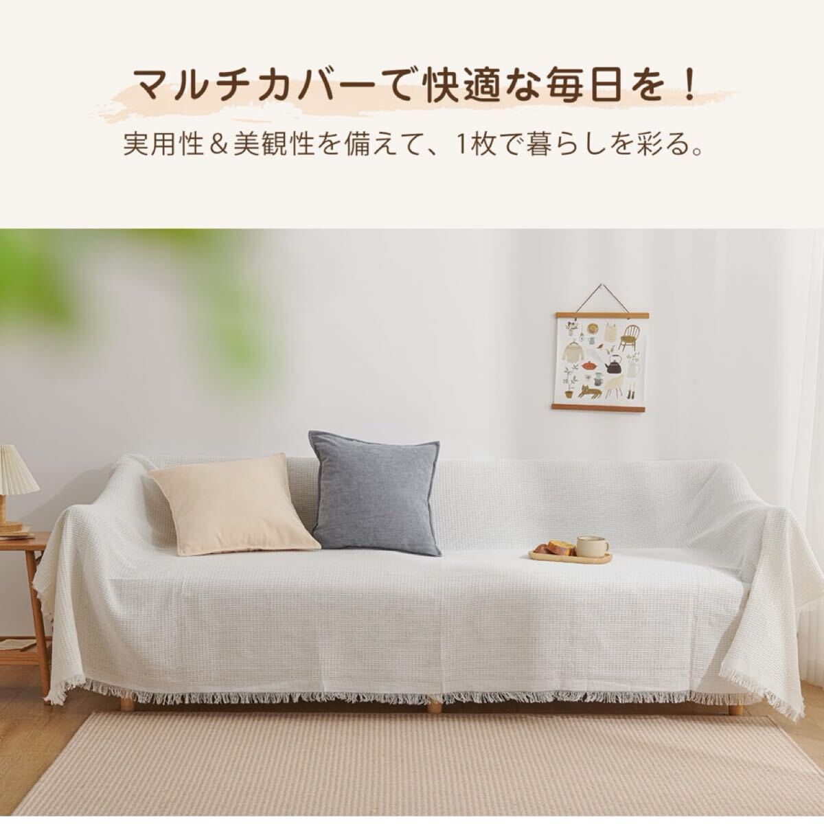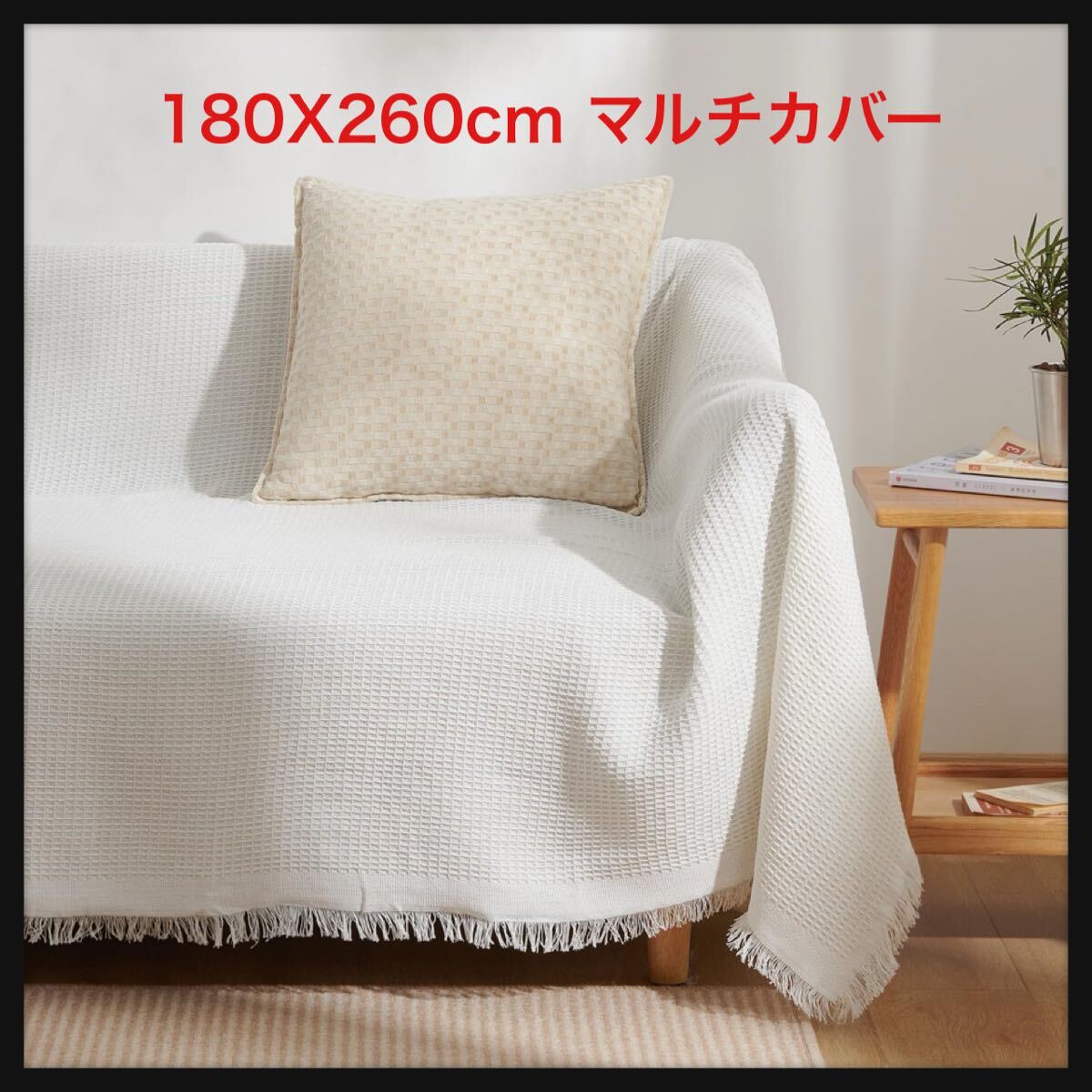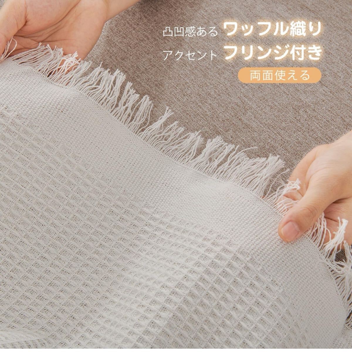 ソファーカバー 北欧風 マルチカバー ソファカバー 肘付き 肘なし 多機能 ブランケット 綿 無地 リバーシブル フリンジ付き おしゃれ 保護カバー 防塵 キズ防止 汚れ防止 洗える 四季通用 大判 ホワイト・ワッフル柄 180X260cm(2.3人掛け)