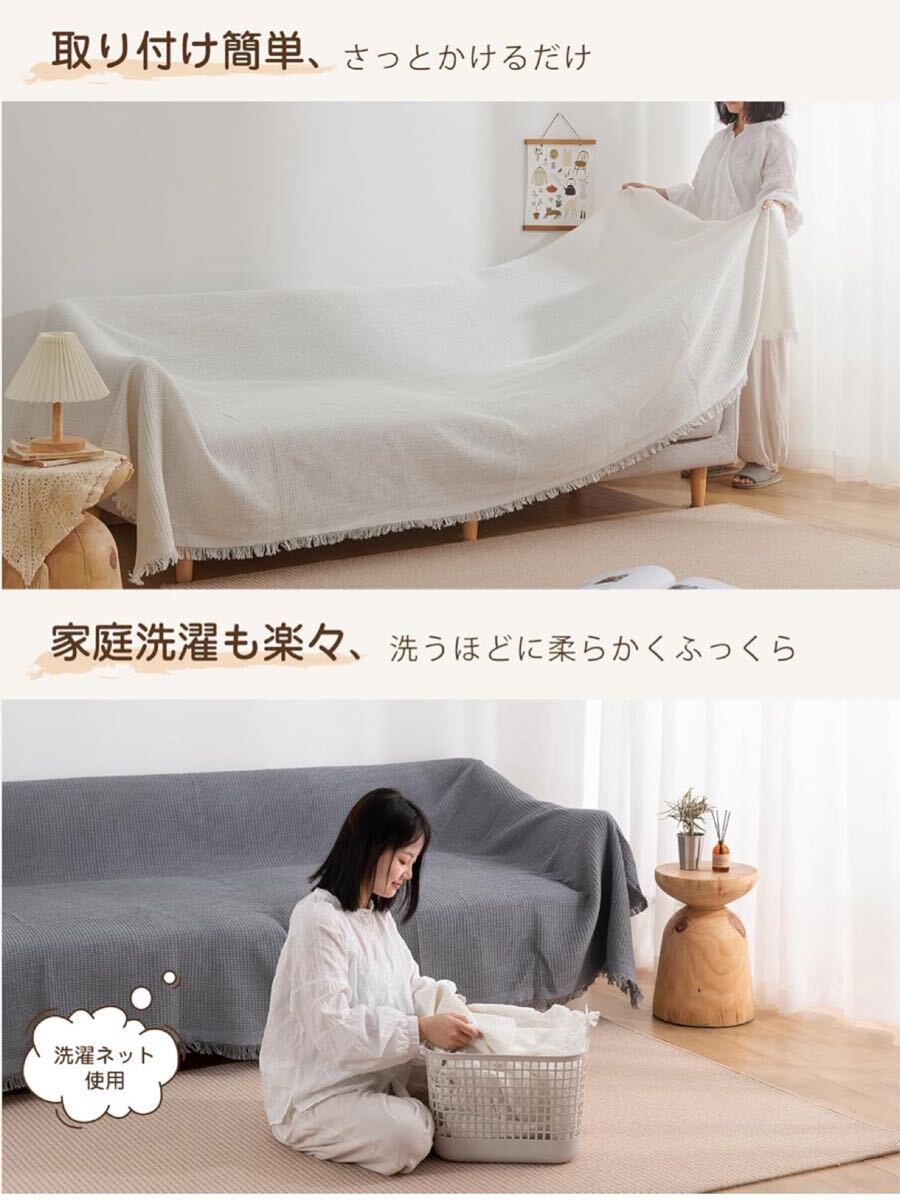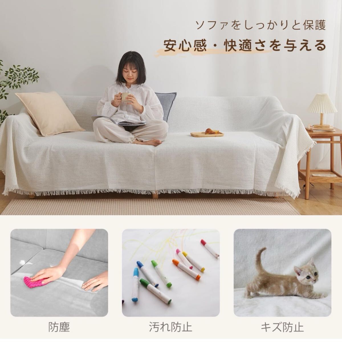 ・【幅広い使用範囲】かけるだけでソファー全体をカバーでき、防塵やキズ防止などの機能があり、ソファーをしかっりと保護できます。多機能で、ベッドカバー、テーブルクロス、冷房毛布、ひざ掛け、防塵カーペット、キャンプカーペット、旅行毛布などとして一年中活躍できます。